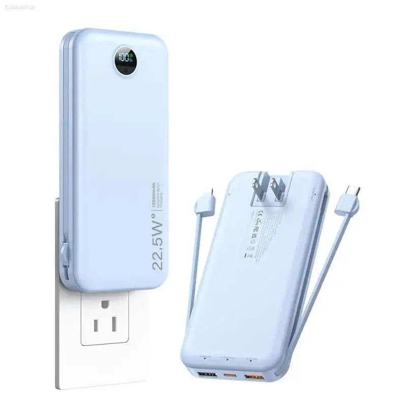 Power up on the go with the 12000mAh Portable AC Wall Plug Power Bank—designed for smartphones and travelers who refuse to miss a moment. With built-in dual cables and a clear digital display, you get reliable power without the cable chaos.
