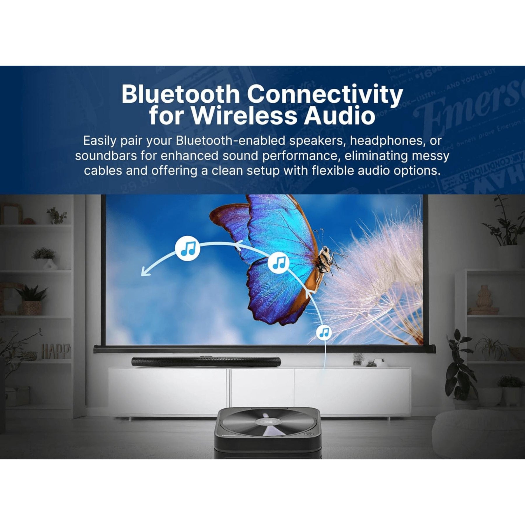 • Projection Size: 32" – 120" for a big-screen feel in any room.