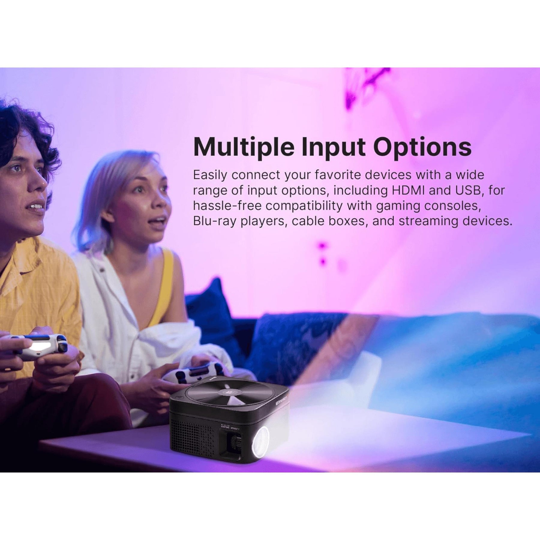 • Stream Media with Ease: Connect via USB flash drives, Micro SD cards, HDMI, or AV IN; compatible with streaming devices like Roku, Amazon Fire Stick, or Google Chromecast (devices sold separately).