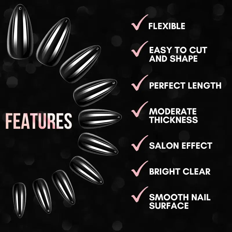 Makartt 500Pcs Clear Stiletto Acrylic Nail Tips are designed for professional nail technicians and DIY enthusiasts who crave a flawless, long-lasting canvas for nail art. With a clear finish and dramatic stiletto shape, these full-cover tips make bold designs easier than ever.
