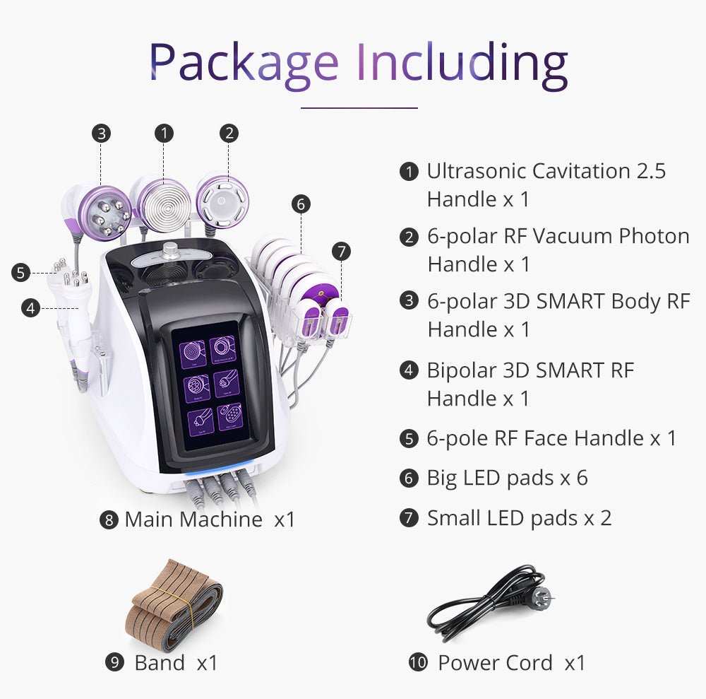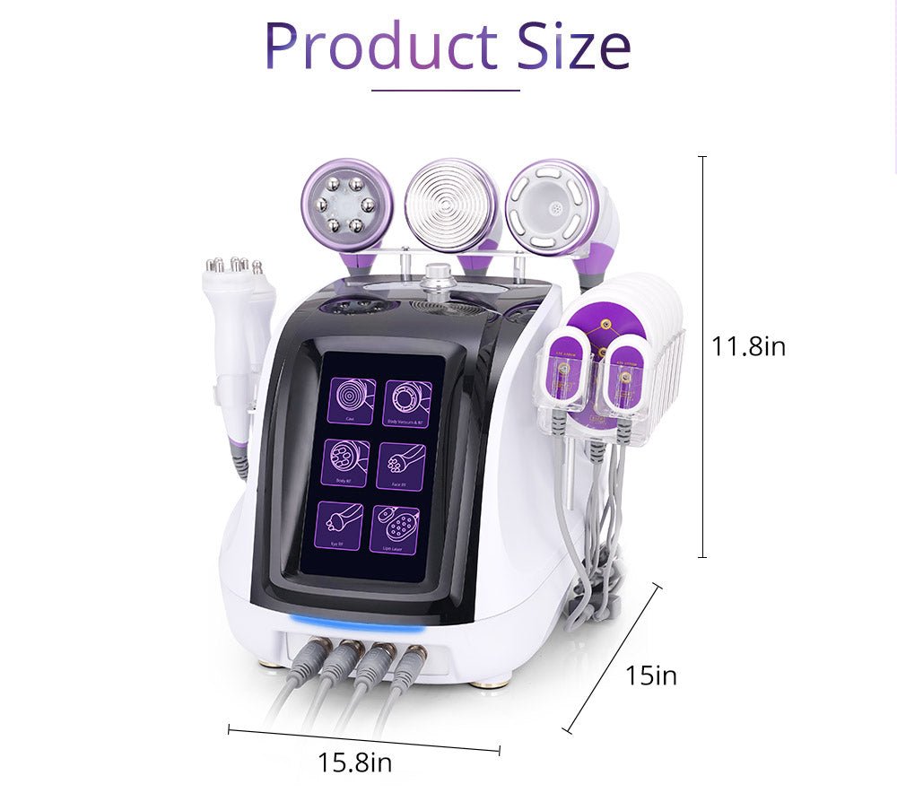 • 6-in-1 Multifunctional System – Combines cavitation, RF, vacuum therapy, and lipo laser technology.