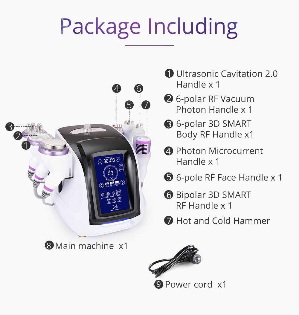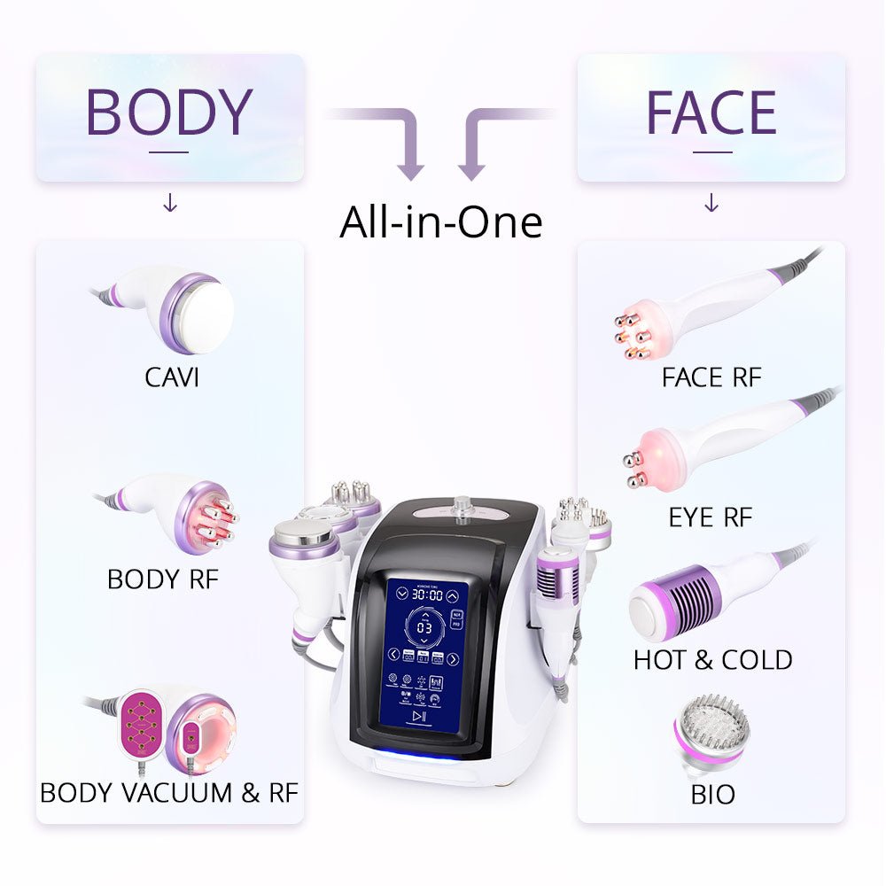 This multifunctional system blends advanced cavitation, radio frequency, vacuum therapy, microcurrent, and LED technologies into one streamlined, user-friendly unit. From Unoisetion 40K cavitation and 3D SMART RF to vacuum photon therapy and hot/cold options, it delivers a comprehensive suite of treatments that target contouring, tightening, and skin renewal with efficiency and reliability.