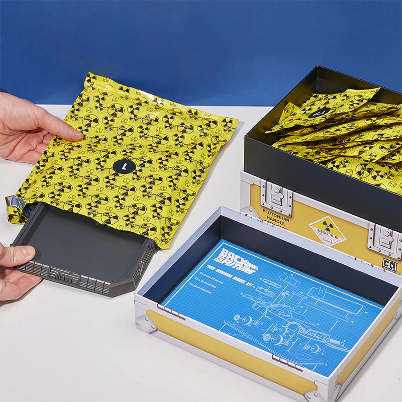 • Collector’s box — replicates the design of the plutonium case from the movie.