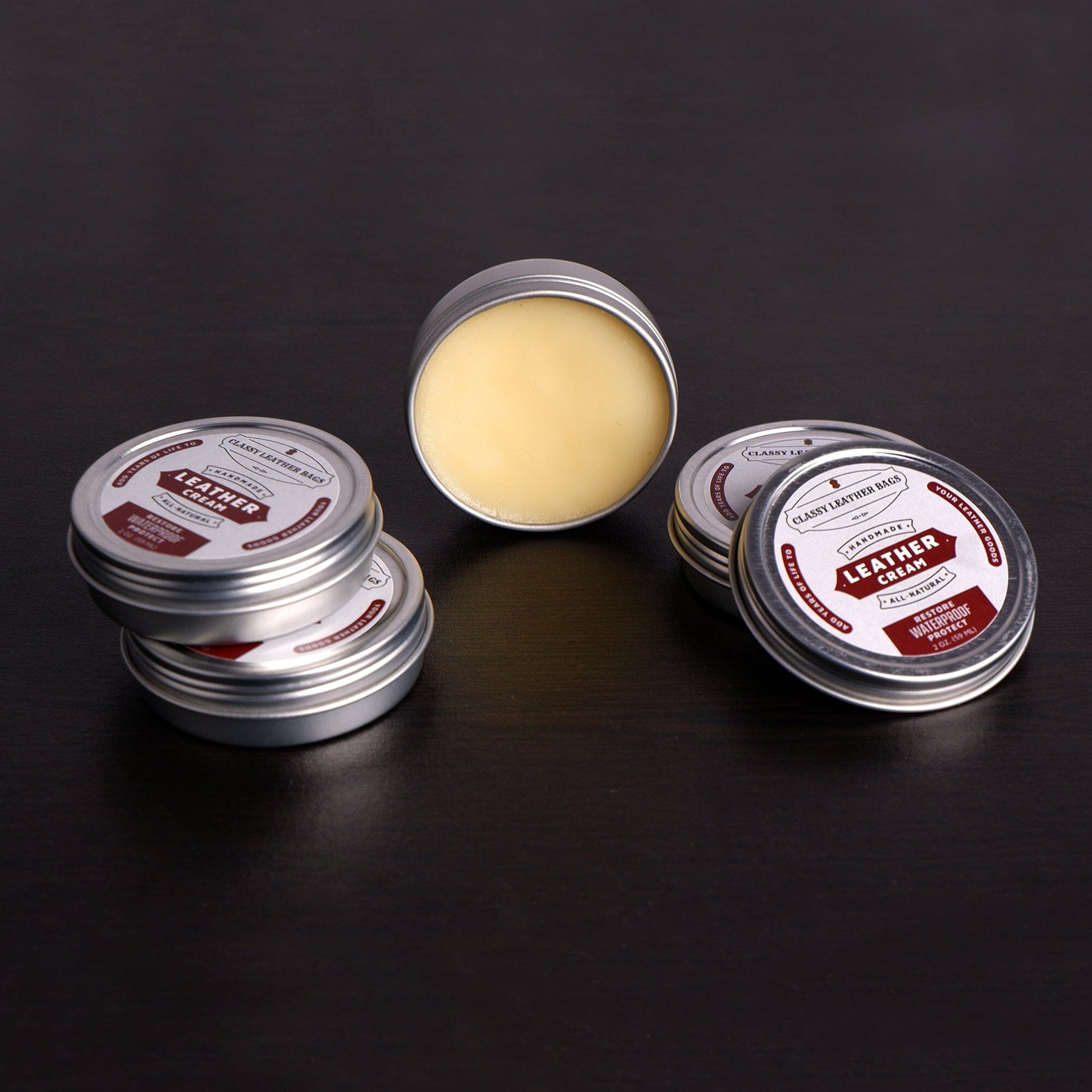 Our handmade, all-natural, semi-thick leather cream offers maximum protection and restoration, adding years of life to your leather goods. Ideal for leathers that need extra protection touched up and those frequently exposed to the elements.