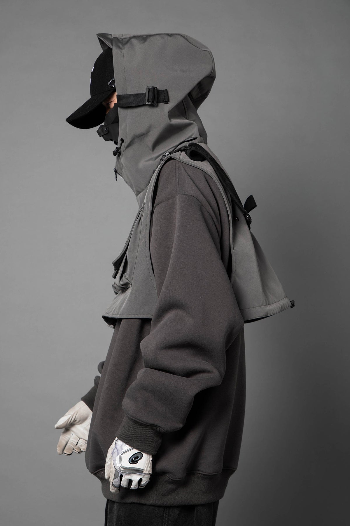 • Attached upper vest: With double pockets for extra storage and techwear look
