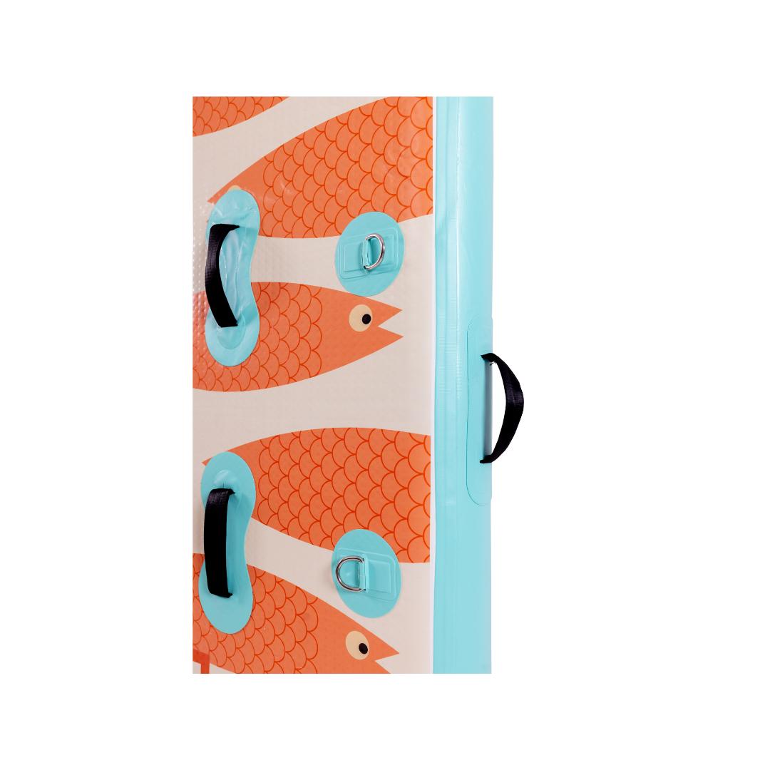• Handles & Tethering: 6 robust fabric handles around the edges. 2 handles on the surface for climbing aboard. 4 stainless steel d-rings on the corners for easy tethering. 2 stainless steel d-rings to attach rope ladder.