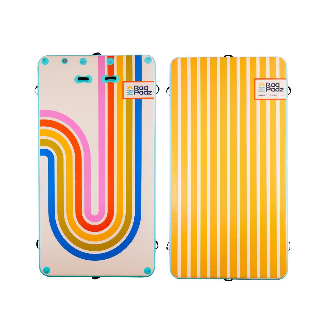 • Set-Up & Inflation: Inflate using the included manual pump or upgrade to our electric pump (available under Accessories) for fast, hands-free inflation. Bonus: set your preferred PSI and walk away. Inflate your platform to 2–5 PSI. 2 PSI = soft and bouncy. 5 PSI = rigid and dock-like. Use the built-in D-rings to tether securely to your boat, dock, or anchor.