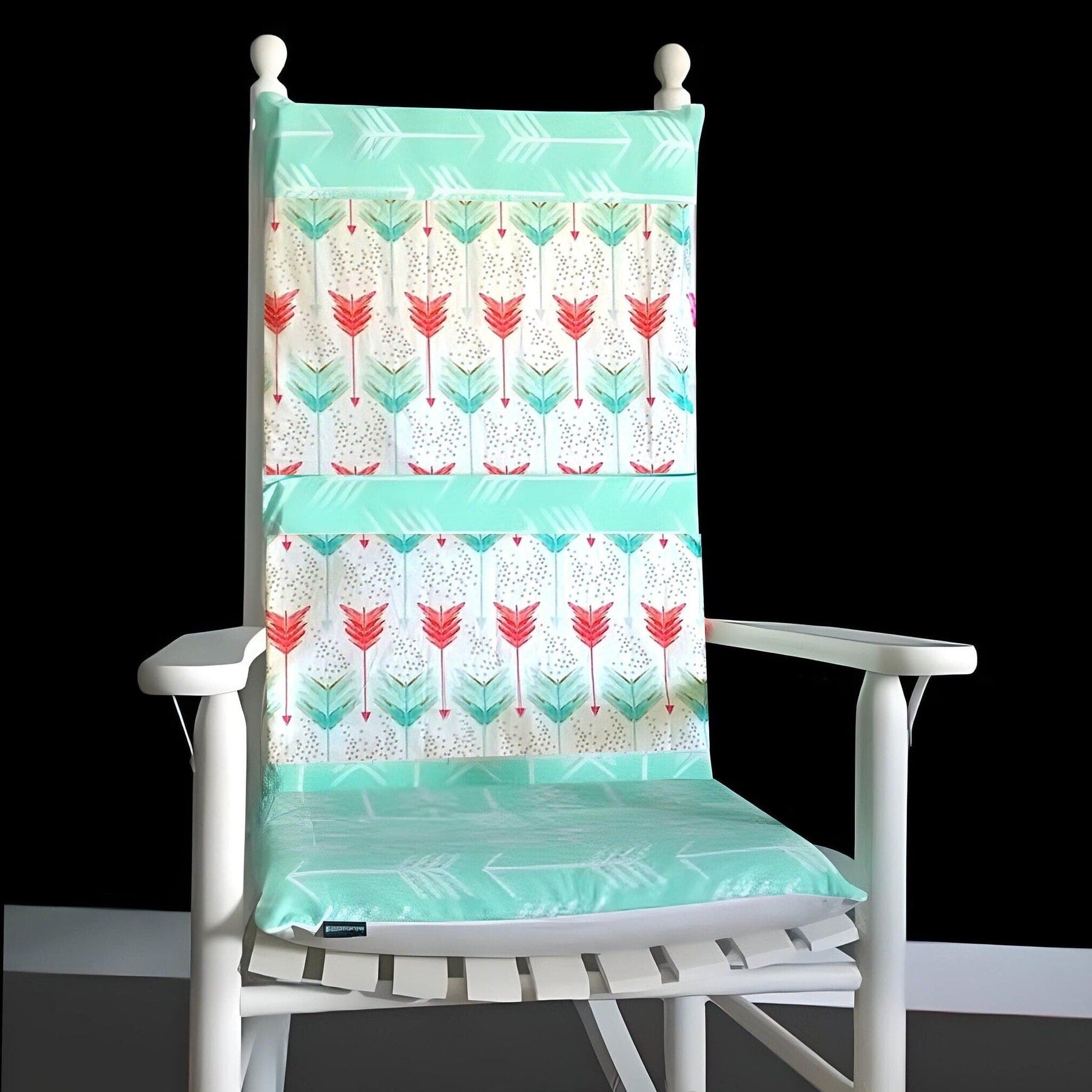 Patchwork Mint Green, Coral Pink Arrows Custom Rocking Chair Pad
