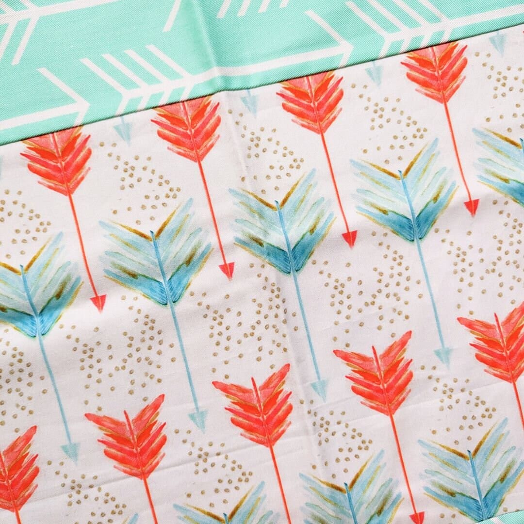 • Patchwork design: A chic patchwork pattern with mint green and coral pink arrows for a contemporary look.