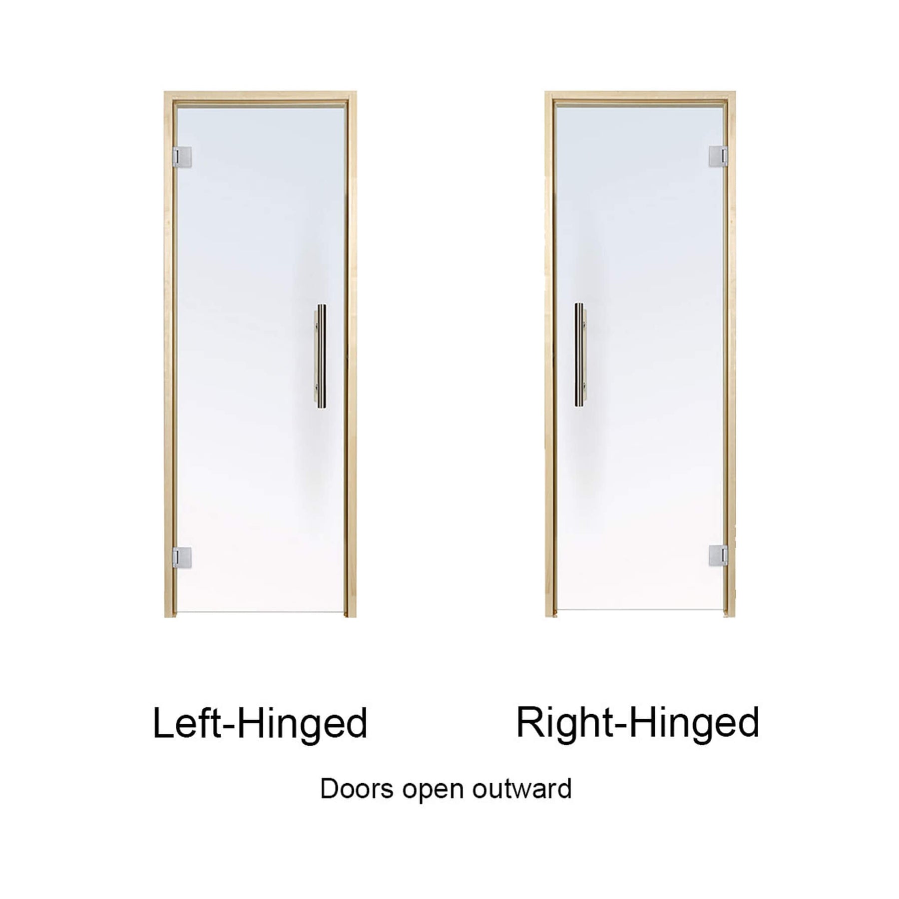 Installation is a breeze! Each door arrives pre-hung, saving you time and effort so you can enjoy your upgraded sauna sooner. The premium-quality aspen wood jamb and header provide a sturdy and durable frame that beautifully complements the clear glass. This precision-built, hinged door is designed for a perfect fit, making it a seamless and stylish upgrade for any new or existing sauna.