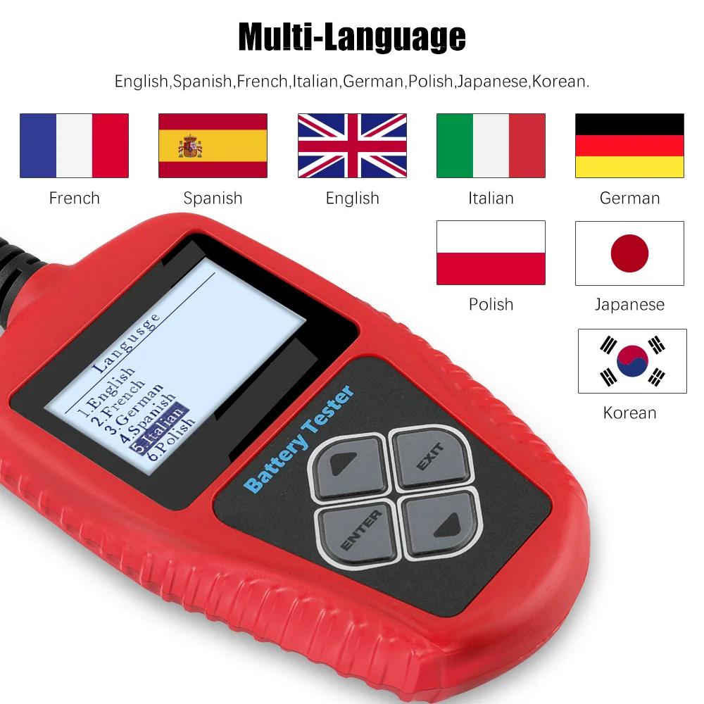 • Advanced Technology — Tests as low as 1.5V; CCA range: 100-2000; Backlit LCD display; Multi-language support.