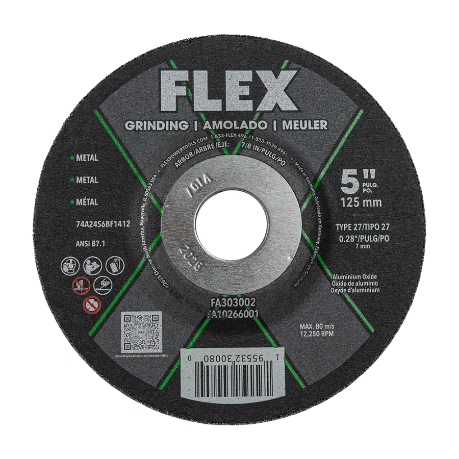 Meet the FLEX FA303002 5" Grinding Disc Type 27—your go-to tool for fast metal grinding with clean, controlled results. Designed for use with angle grinders, this disc gets the job done without turning your workspace into a sauna.