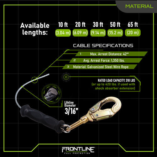 • Available Lifeline Length: 10', 20', 30', 50', 65'