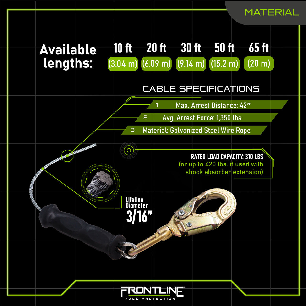 • Available Lifeline Length: 10', 20', 30', 50', 65'.