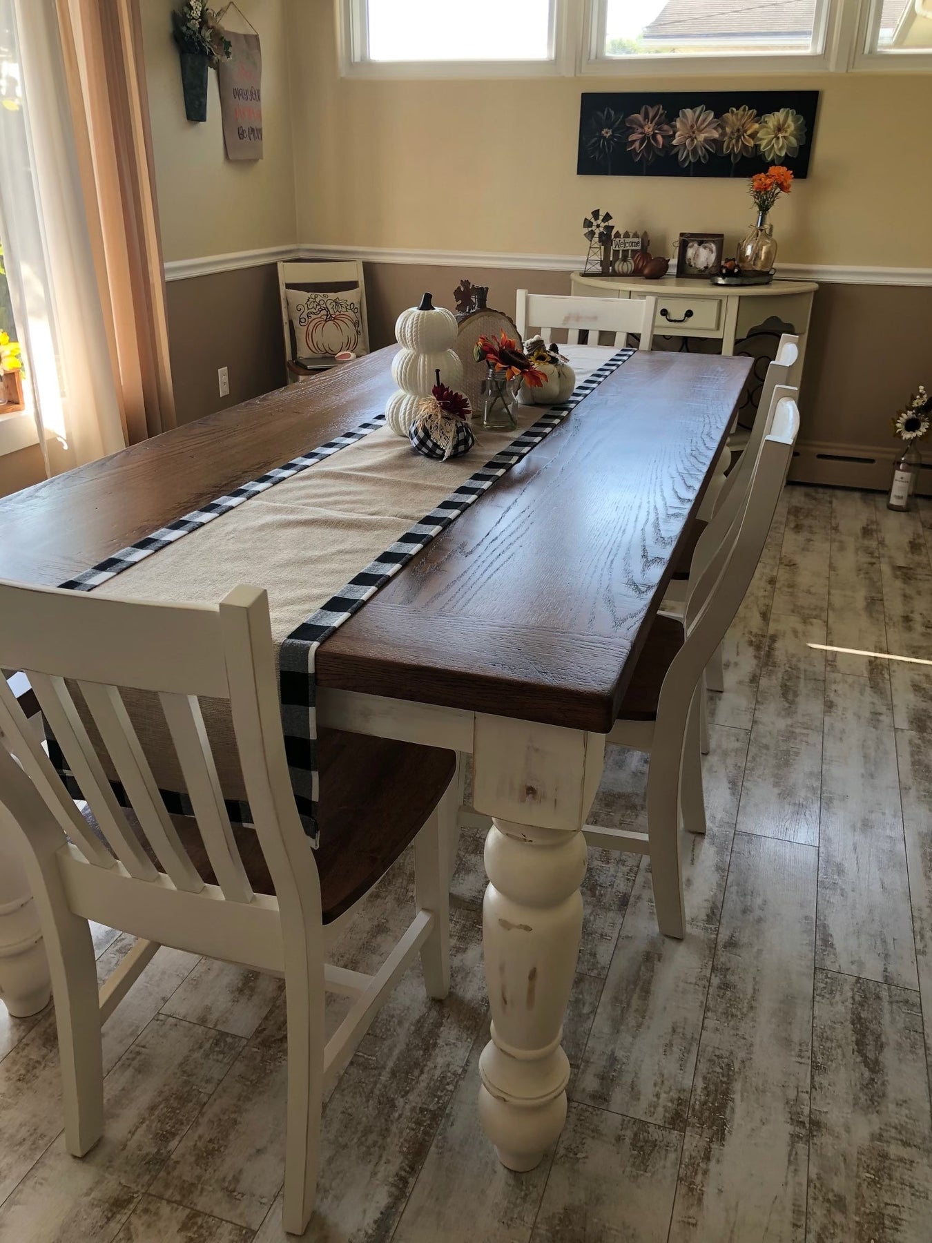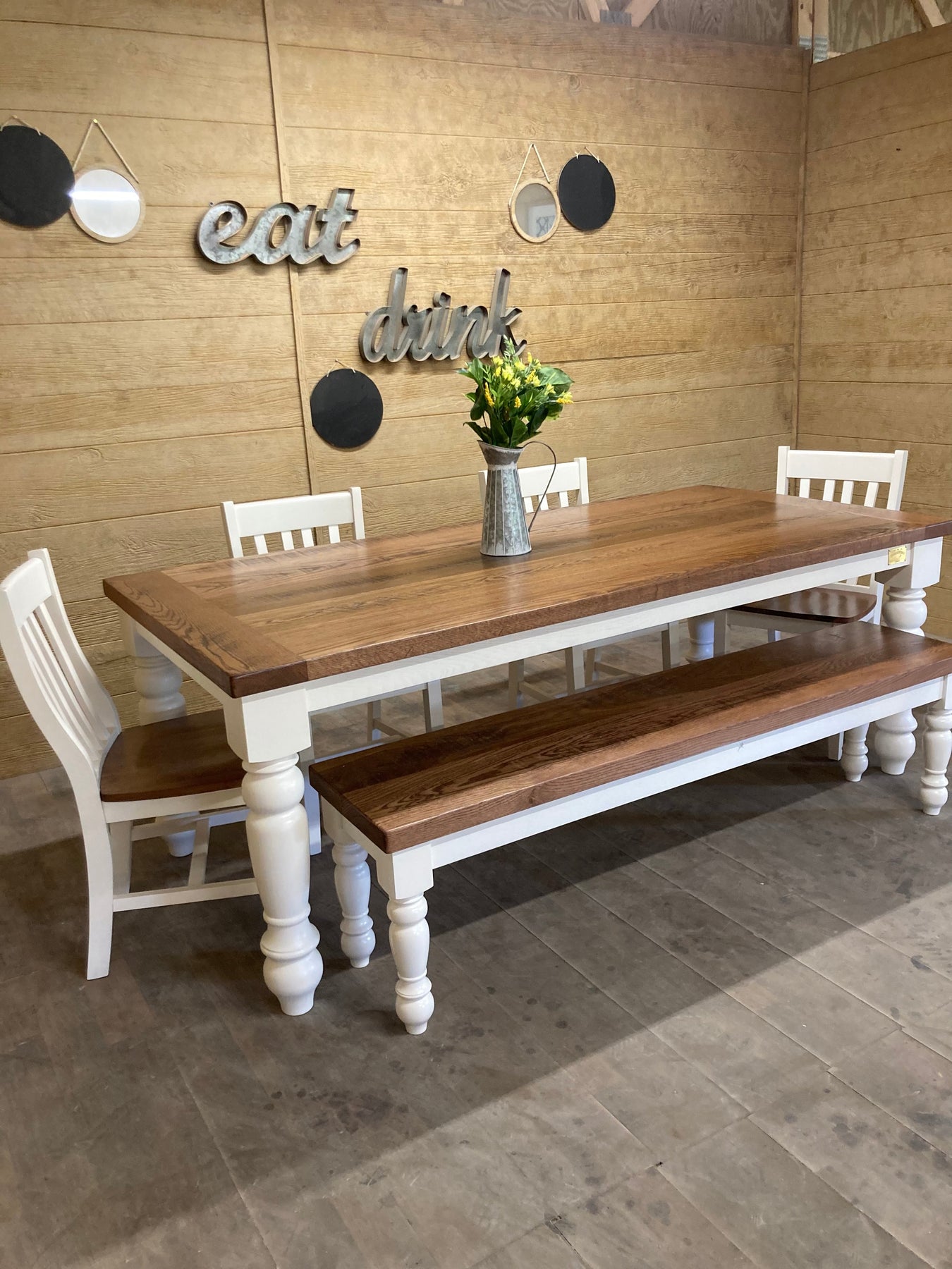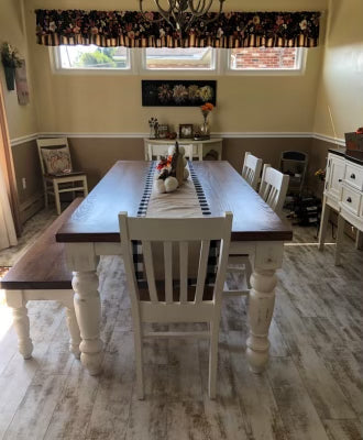 • Finish Flexibility — They can be stained to match your table, painted black with the seat stained to match the table or painted white with the seat stained to match the table.