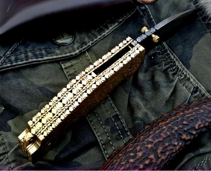 This knife is a true blend of artistry and practicality. The Damascus blade showcases exquisite patterns, while the brass handle adds a warm, timeless feel. Laser engraving and meticulous file work elevate the look, making it as much a conversation piece as a reliable everyday carry tool.