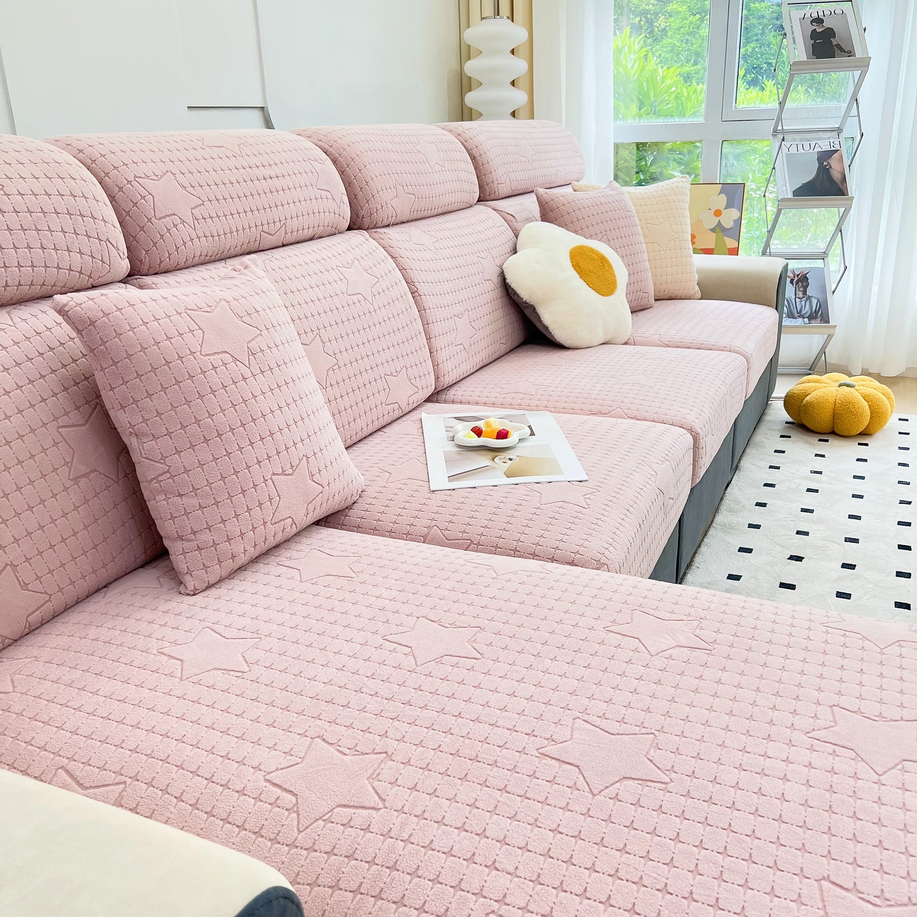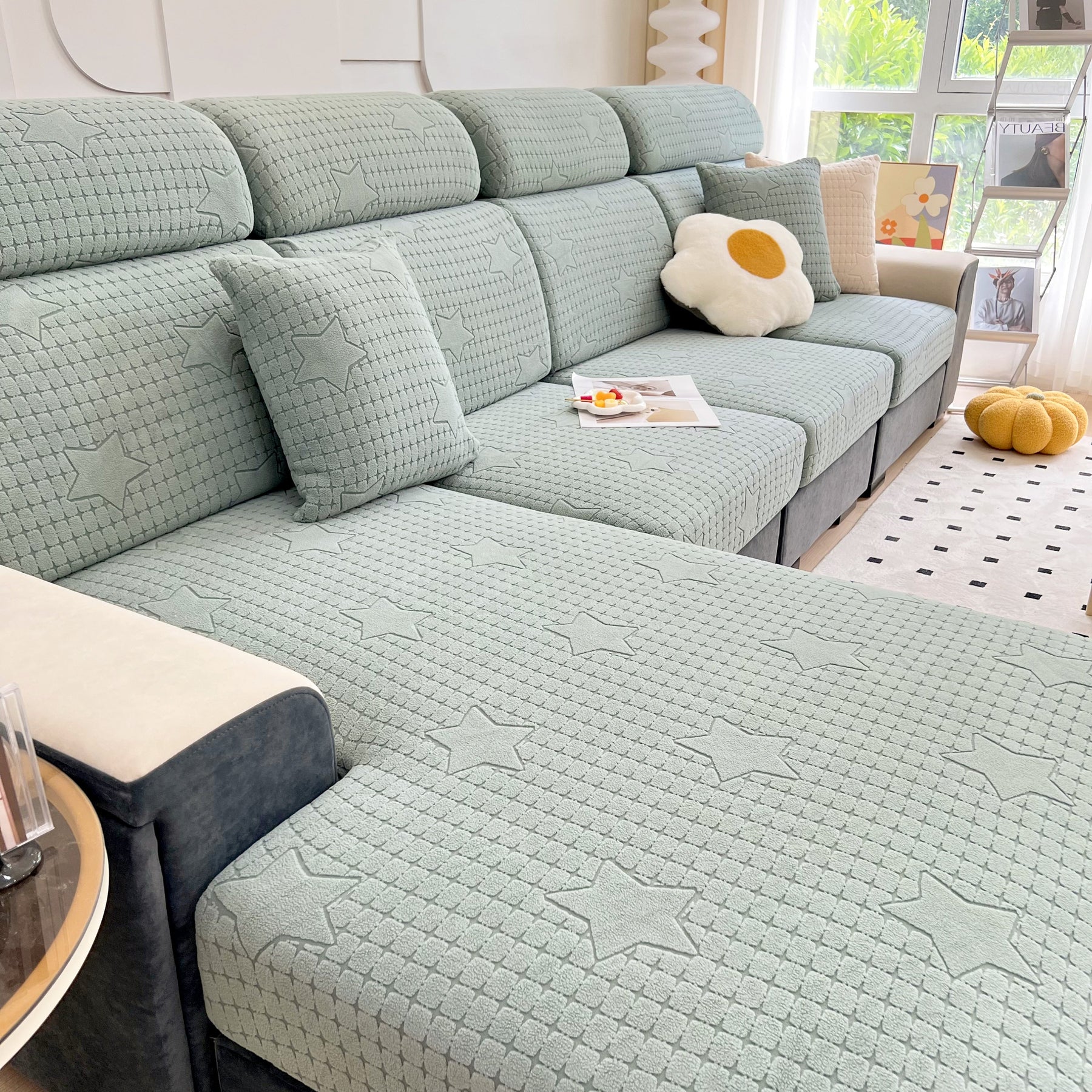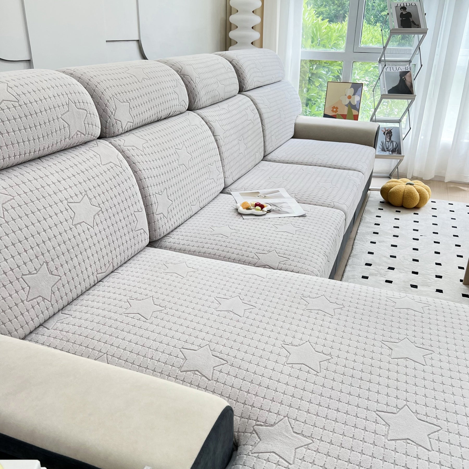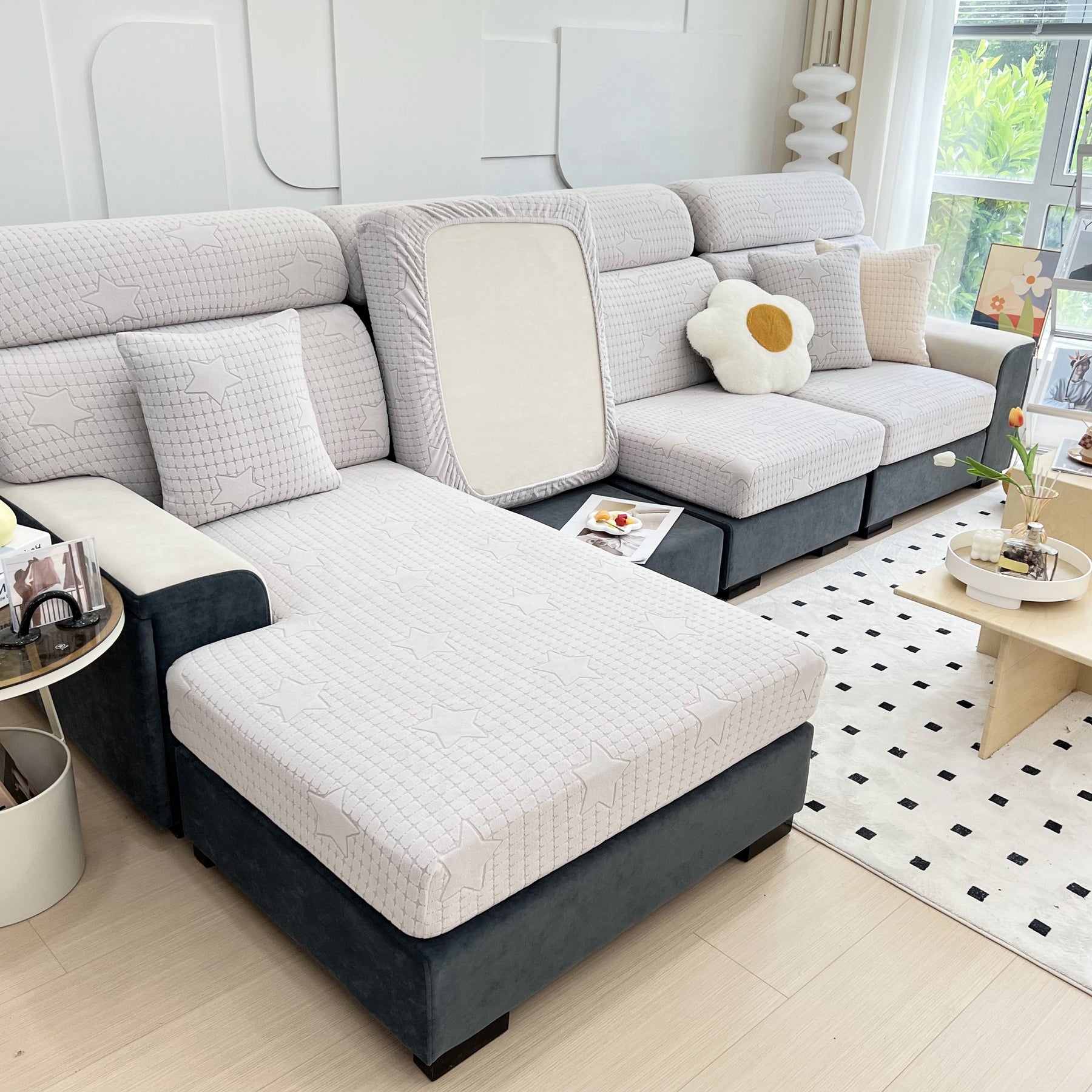 Fleece Fabric Cushion Covers for Sectional Sofas and L-Shaped Couch, Stretch Washable Sofa Seat Covers