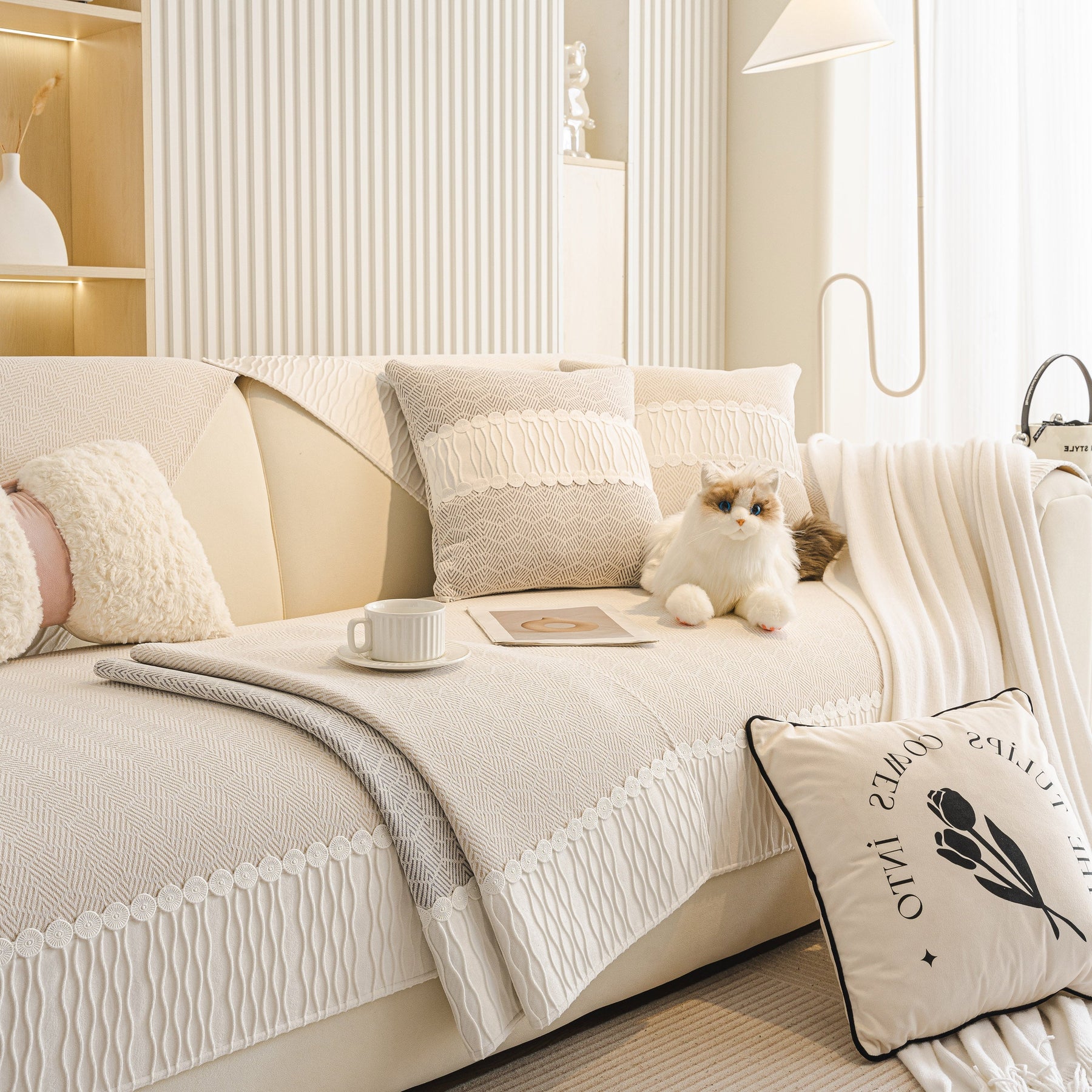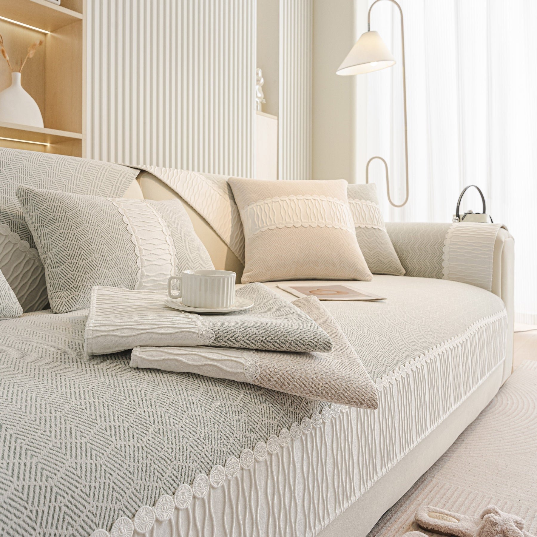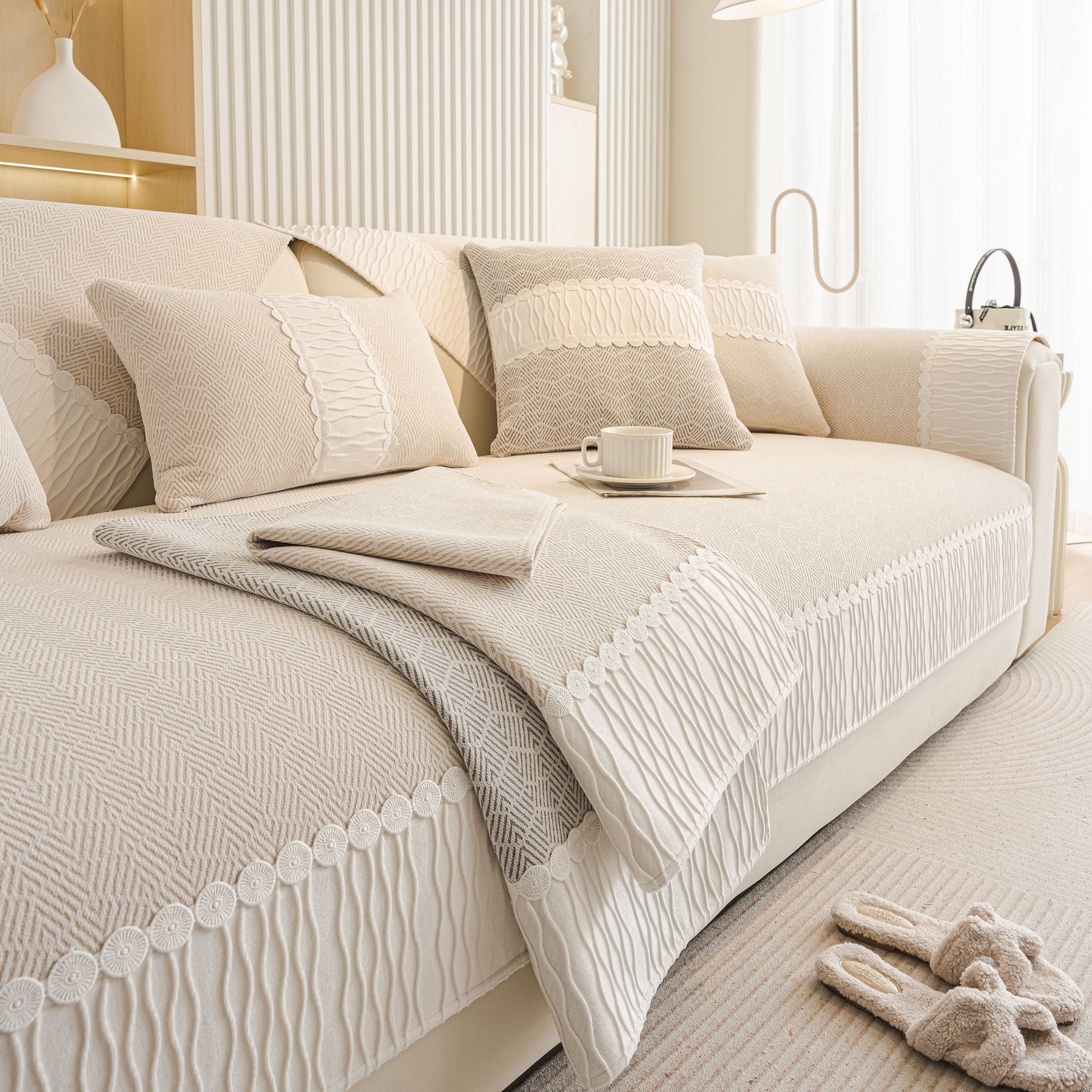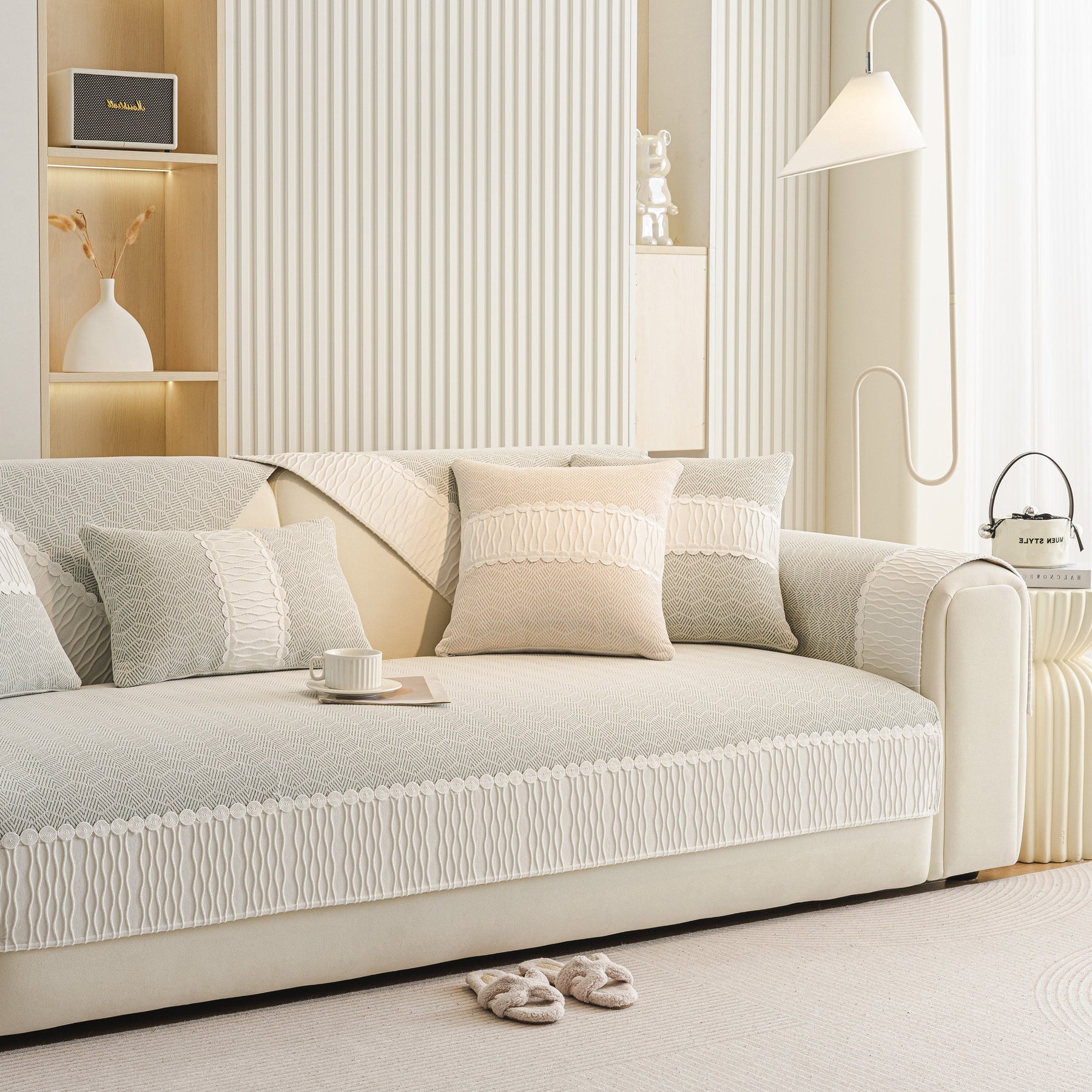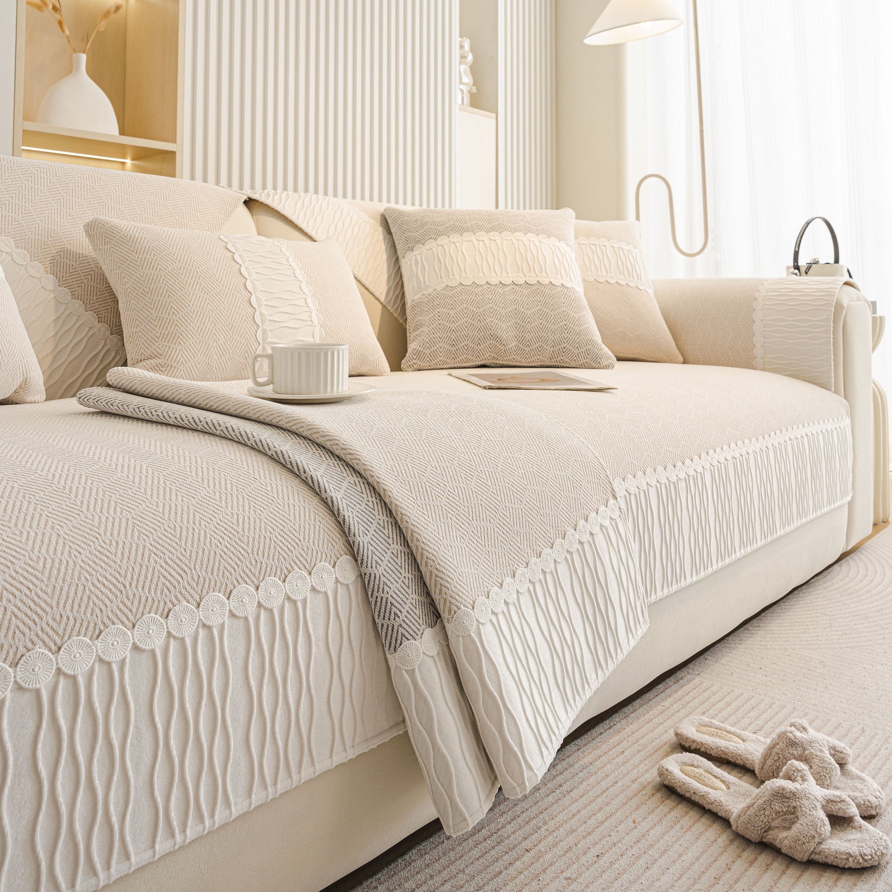 This sofa cover is manufactured from premium skin-friendly chenille fabric, soft, breathable, skin-friendly, comfortable and durable. Suitable for all seasons and will not pilling or fading after washing.