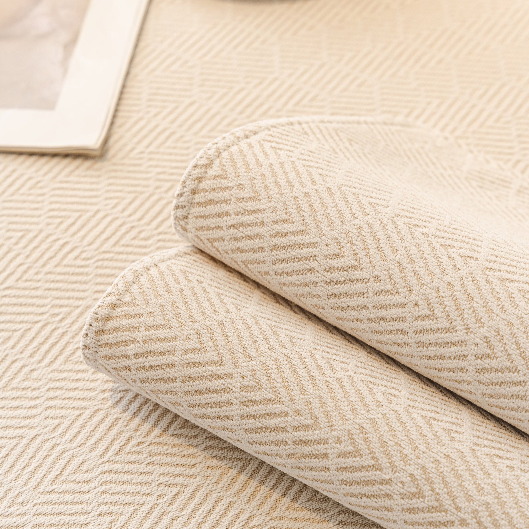 • Premium breathable chenille with a soft-touch herringbone texture, comfortable in all seasons without overheating.