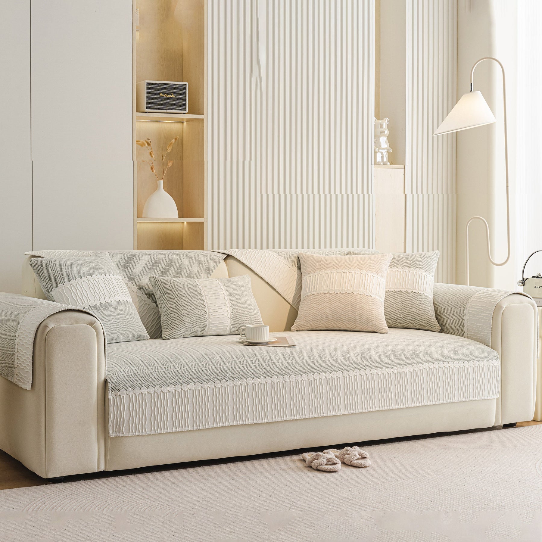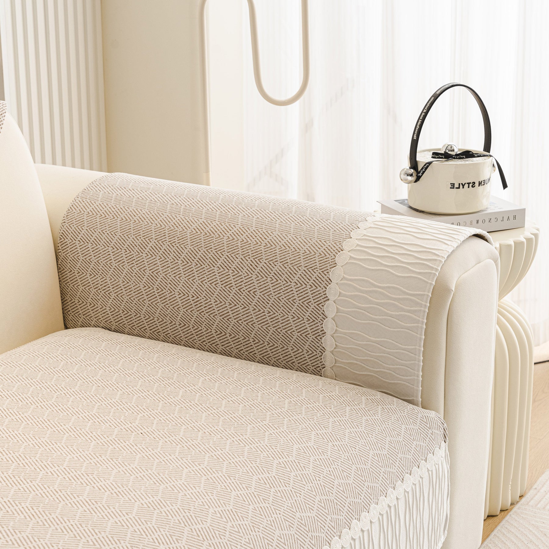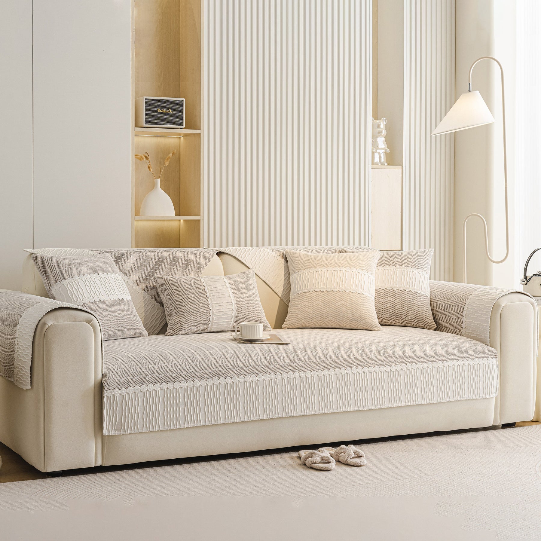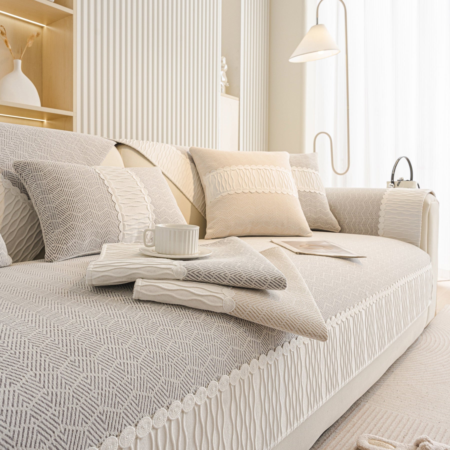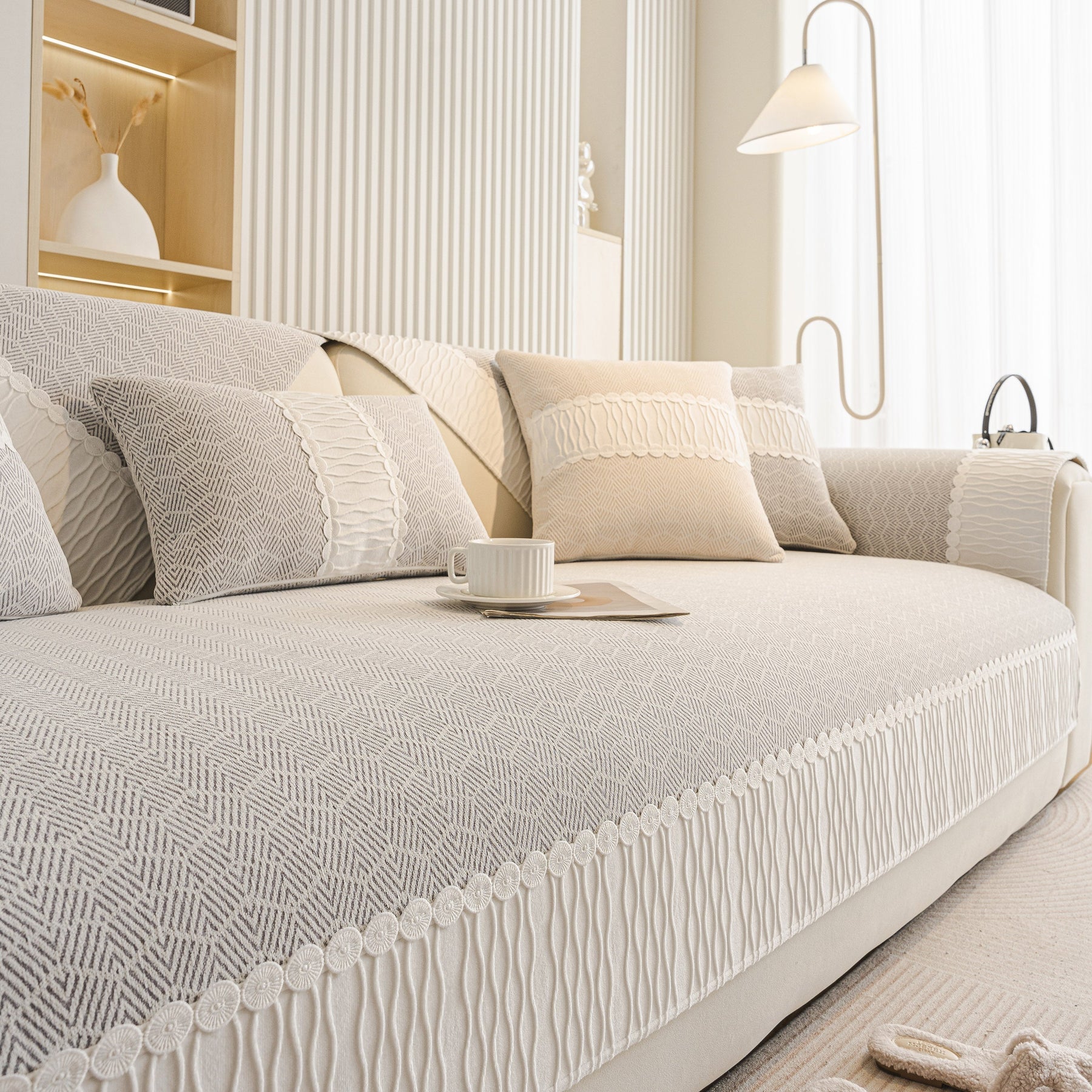 Herringbone Sofa Protector Cover, Non-Slip Couch Cover for Seat, Back & Arms