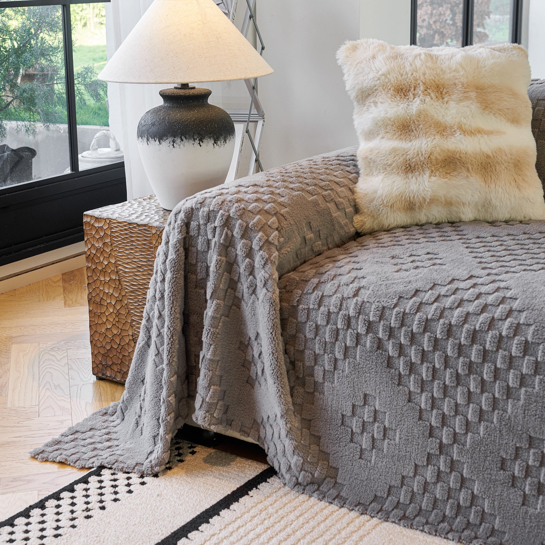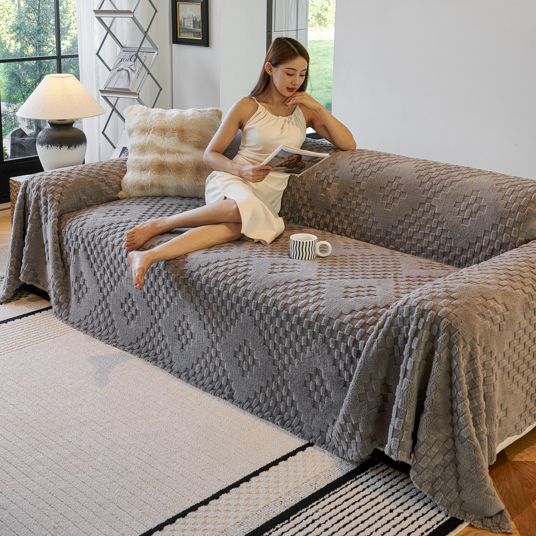 Thickened 3D Plush Premium Living Spaces Couch Covers Soft and Warm Couch Protector Blanket