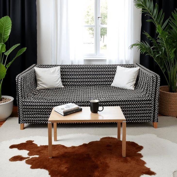 Transform your IKEA Knopparp sofa into a statement piece with our Black Boho Mudcloth Cover. This slipcover protects your sofa while infusing your space with adventurous, comfortable style.
