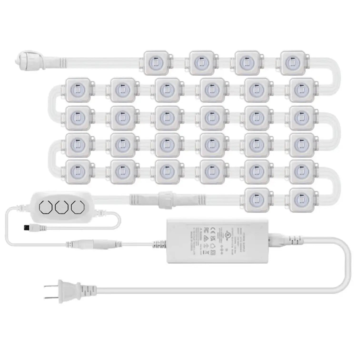 Specifications to keep in mind: IP67 waterproof rating, 24V input voltage, available in 15m and 30m lengths. Included: Lamp Controller, Power Supply, Color Box. Perfect for adding color and ambiance to any outdoor setting.