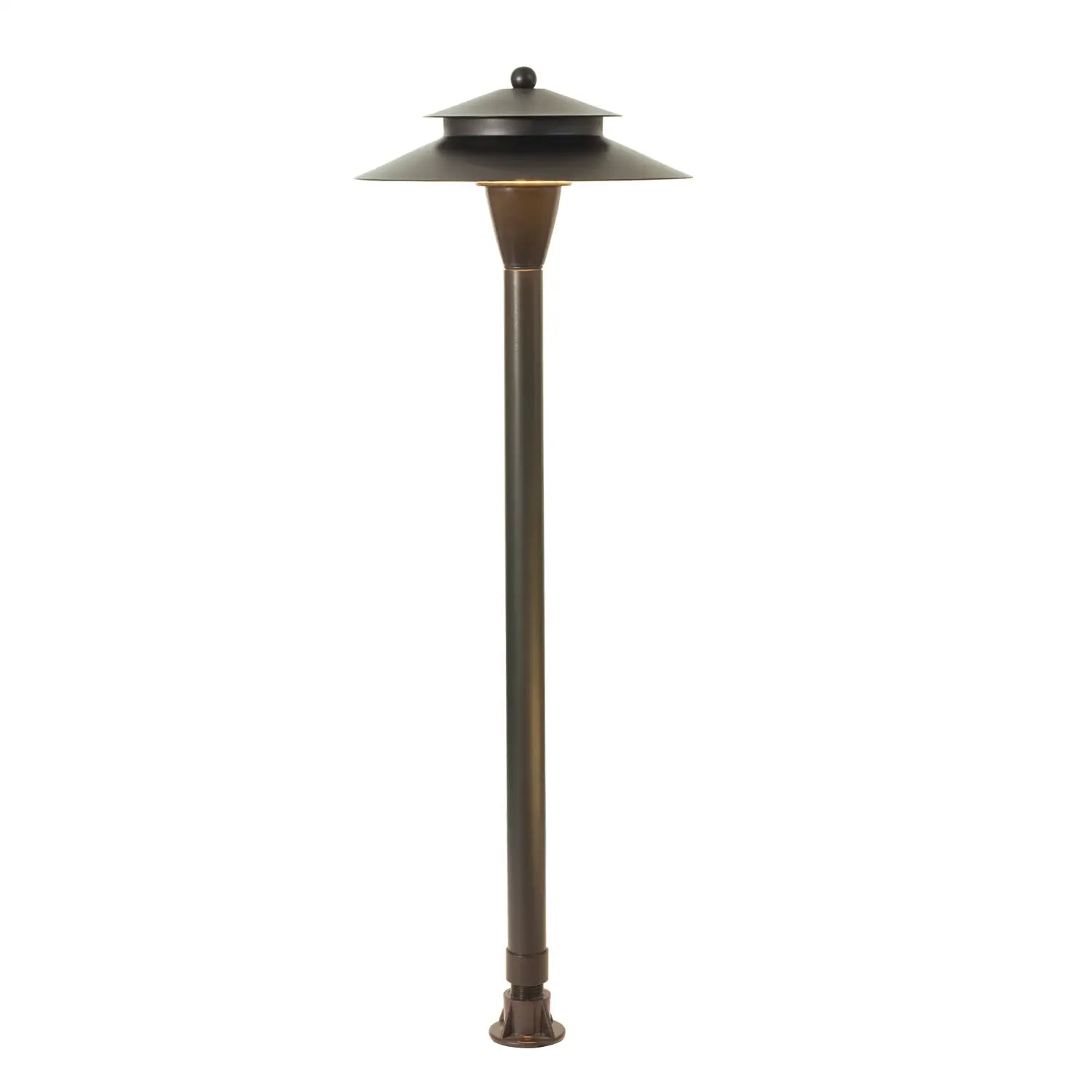 These two-tier outdoor path lights blend rugged durability with classic style. Made from solid die-cast brass with an antique bronze finish, they’re built for walkways and garden paths, offering focused illumination where you need it.