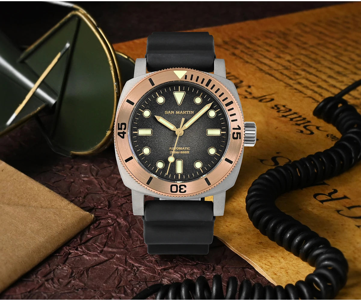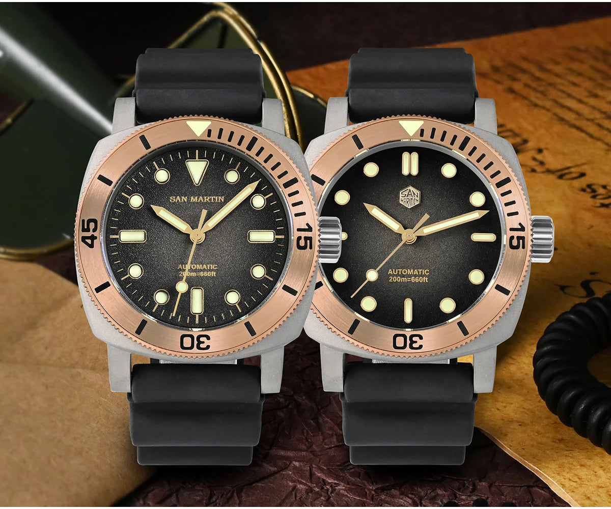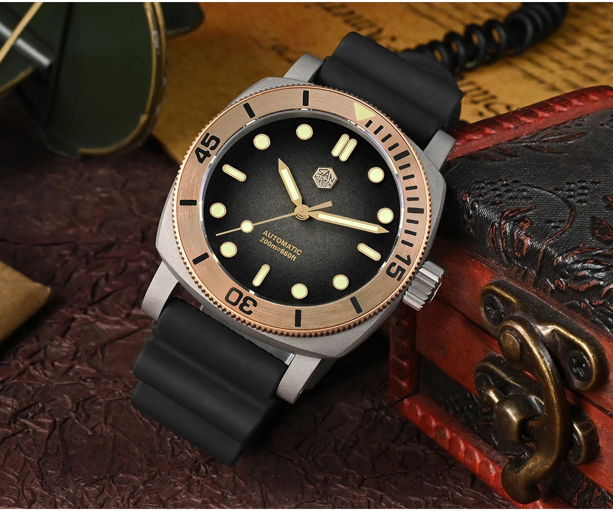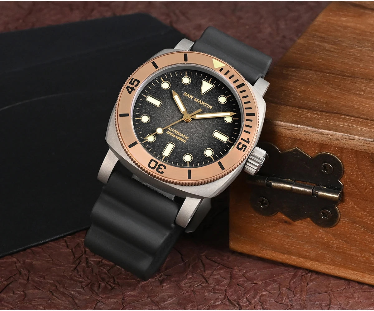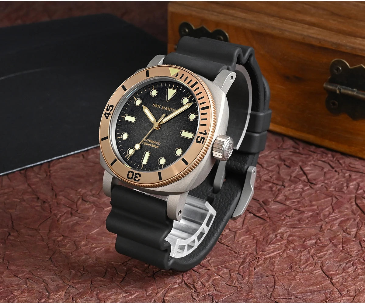 San Martin 42mm Retro Titanium Diver Watch NH35 Automatic Men Mechanical Watches Bronze Bezel Sapphire Luminous Waterproof 200m