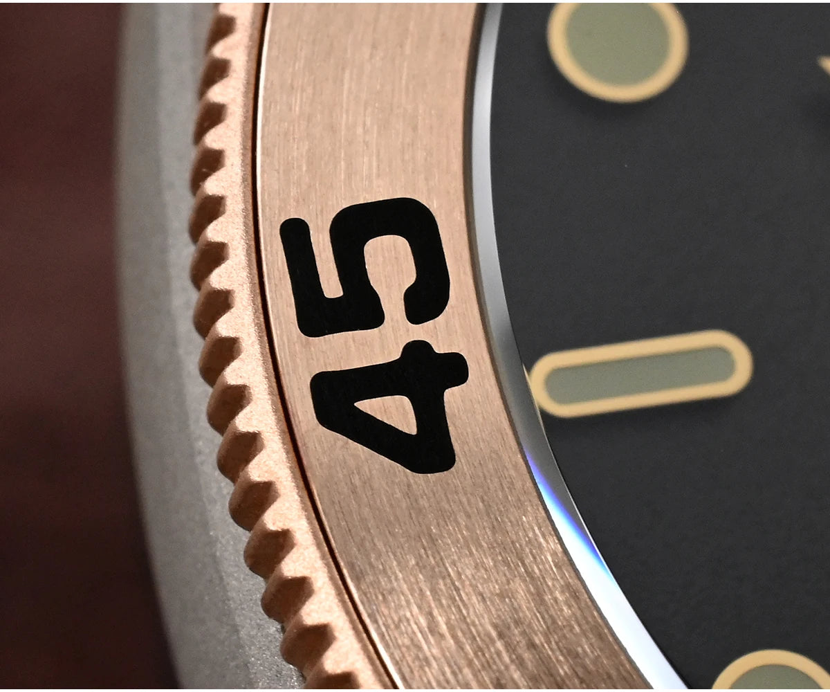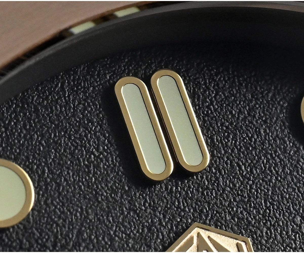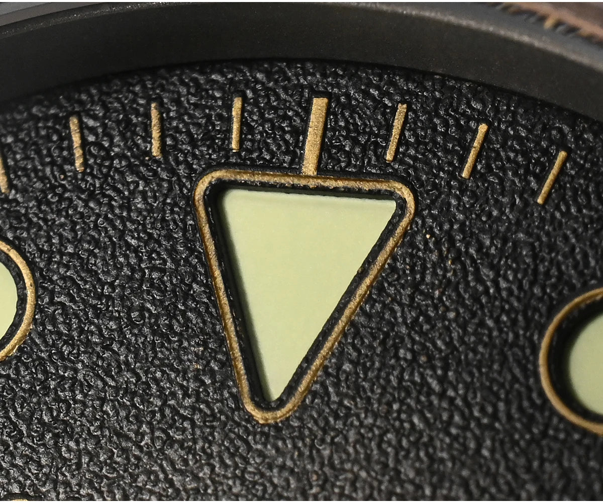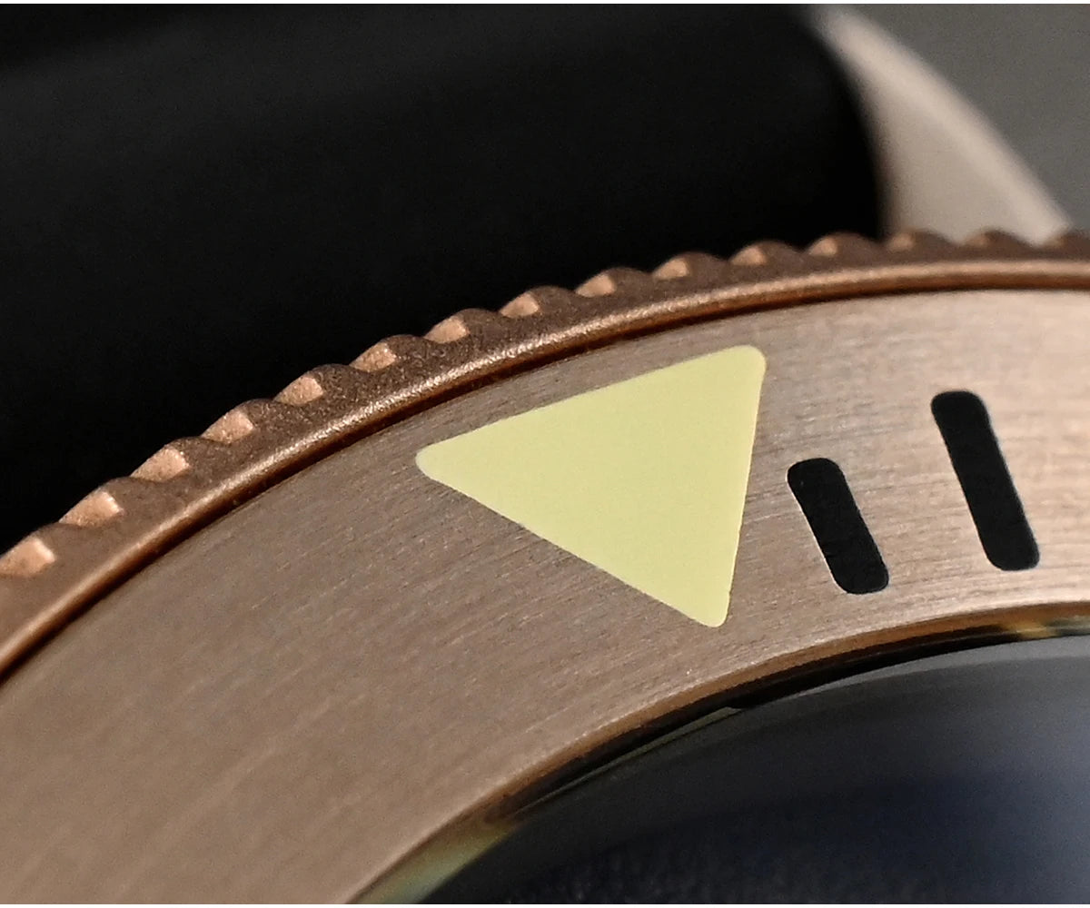 • Bronze bezel and dive timing — Bronze Bezel: 120 Clicks; Bezel provides precise timing for dives while delivering a vintage diver look that turns heads, not wrists.