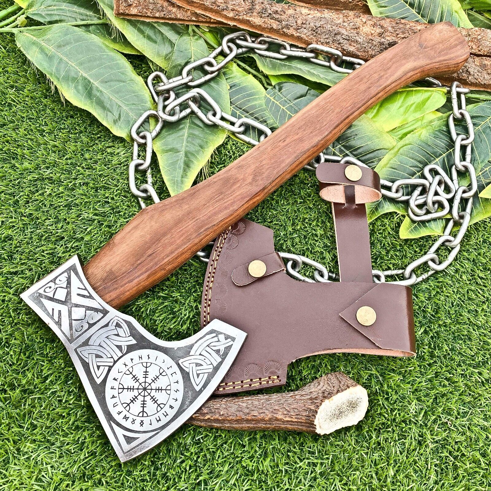 With a Rockwell Hardness of 55-60 HRC, the axe maintains a sharp edge that excels in a range of tasks, from everyday use to more demanding applications. Each axe comes with a durable leather sheath for easy carrying and protection. Embrace the power and precision of Odin’s Fury for all your combat and utility needs.