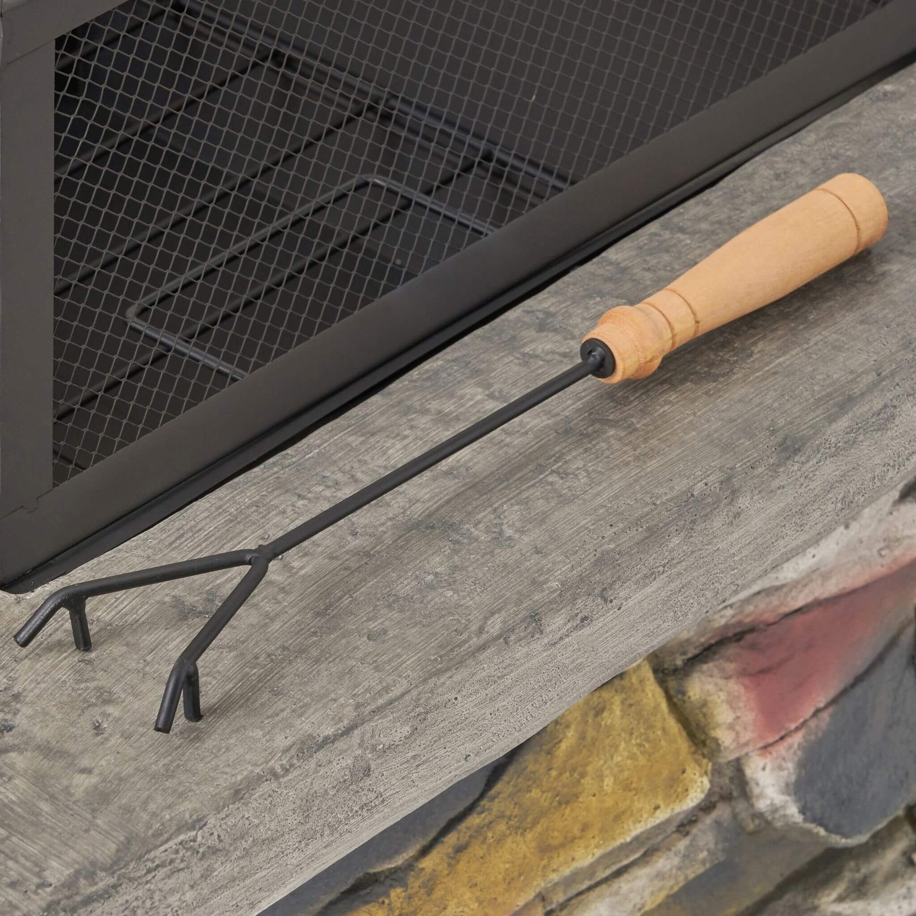 • Safety & Convenience: Mesh cover helps contain sparks and the poker tool aids in safe tending of the fire.