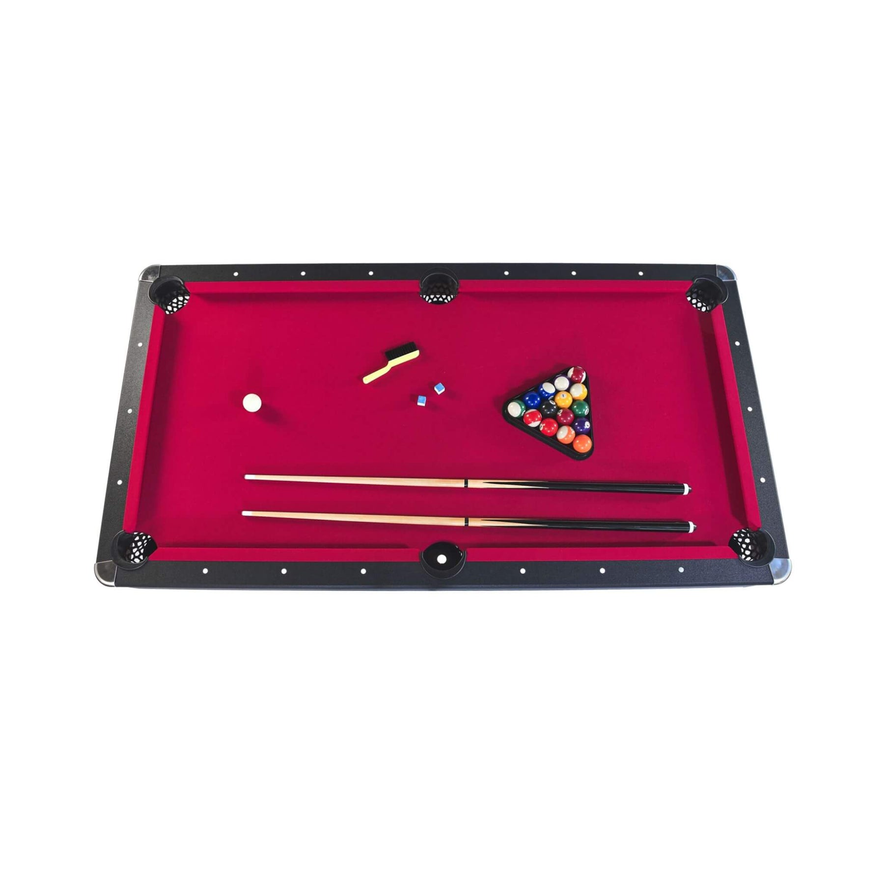 • Premium finish: Sleek black melamine frame paired with a rich burgundy playing surface add a touch of elegance to any room.