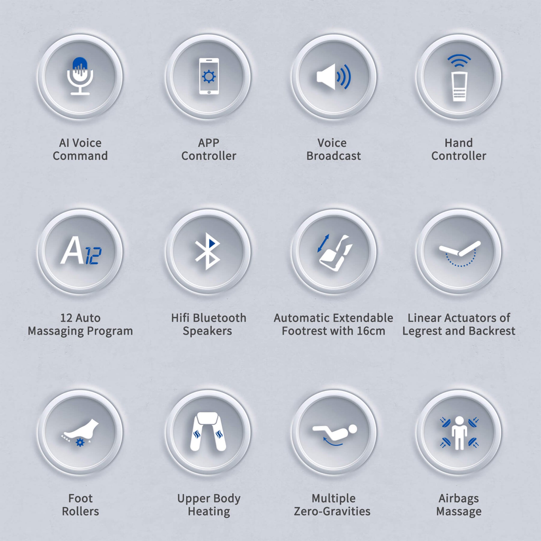 • Massage Modes & Techniques — 12 automatic massage modes and 6 techniques to tailor kneading, rolling, shiatsu and more to your needs.