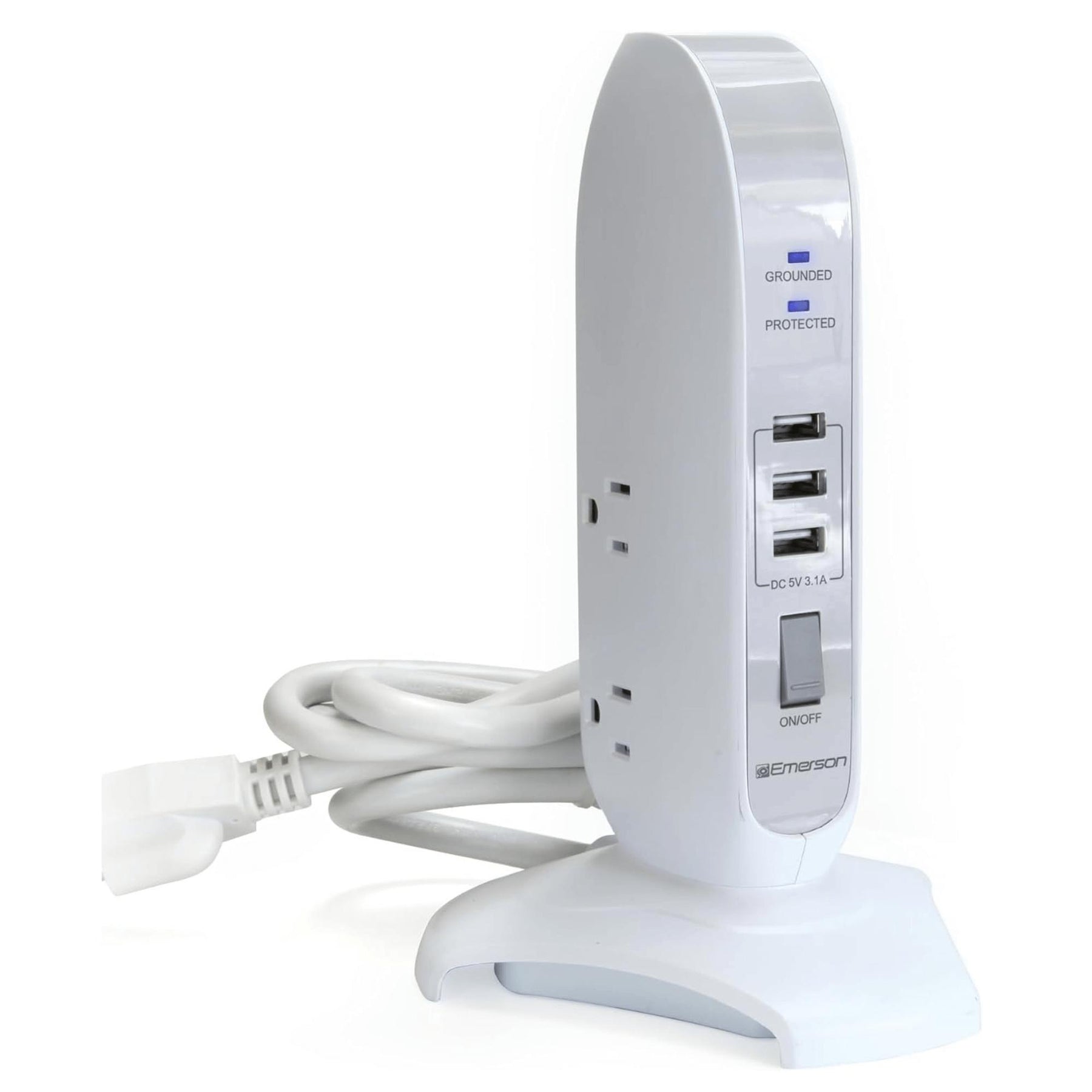 Emerson 5-Outlet + USB Charging Tower with Surge Protection and On/ Off Switch
