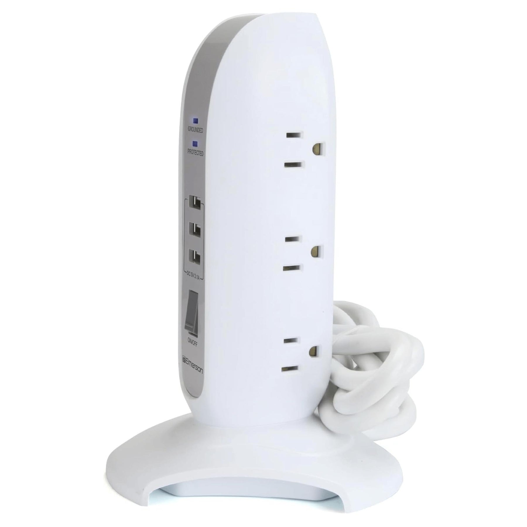 Emerson's 5-Outlet + USB Charging Tower with Surge Protection and On/ Off Switch is the clean, powerful hub your devices have been begging for. Perfect for desks, side tables, or dorm rooms—it's essentially a power organizer that doesn’t glare back at you.