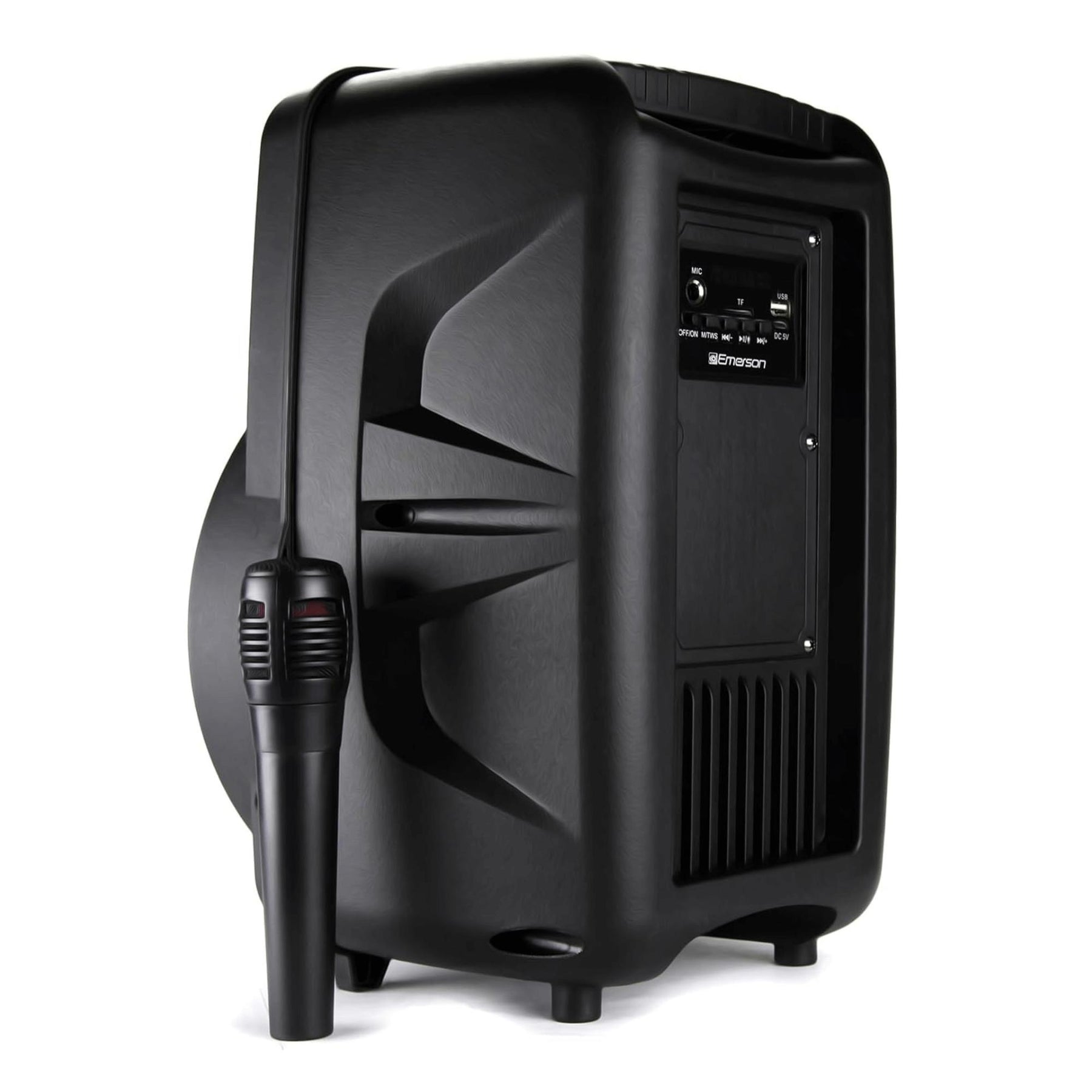 Emerson Portable 8" Bluetooth Party Speaker with FM Radio, Disco Light and Stand