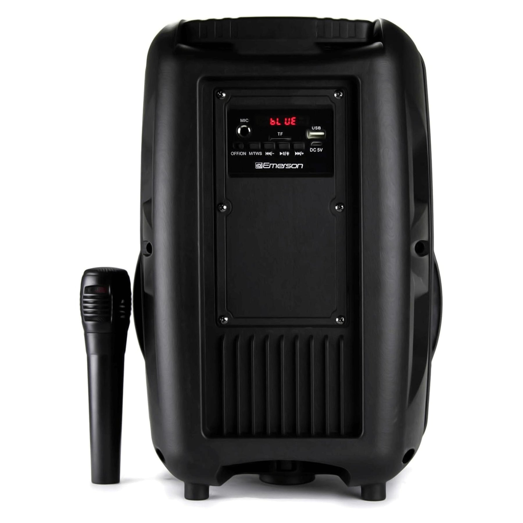 Whether you’re hosting a backyard bash or a hallway dance-off, this portable Emerson speaker keeps things simple and fun. Easy Bluetooth pairing, fun lights, flexible media options, and a microphone input mean you’re ready to turn any space into a party—without fuss, and with plenty of style.