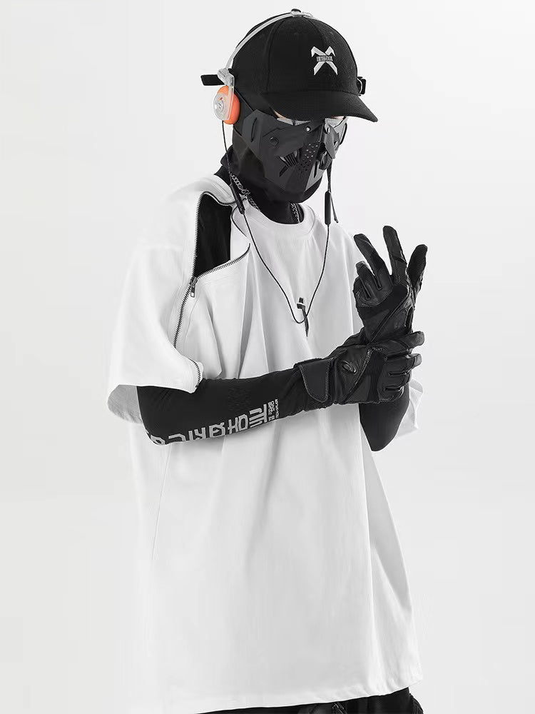 • Design Details: Embroidery i-tech logo design, Zipper on the right arm sleeves for design purposes only, Core AI cyberpunk machine written language design translating to "Urban Heavy Industries"