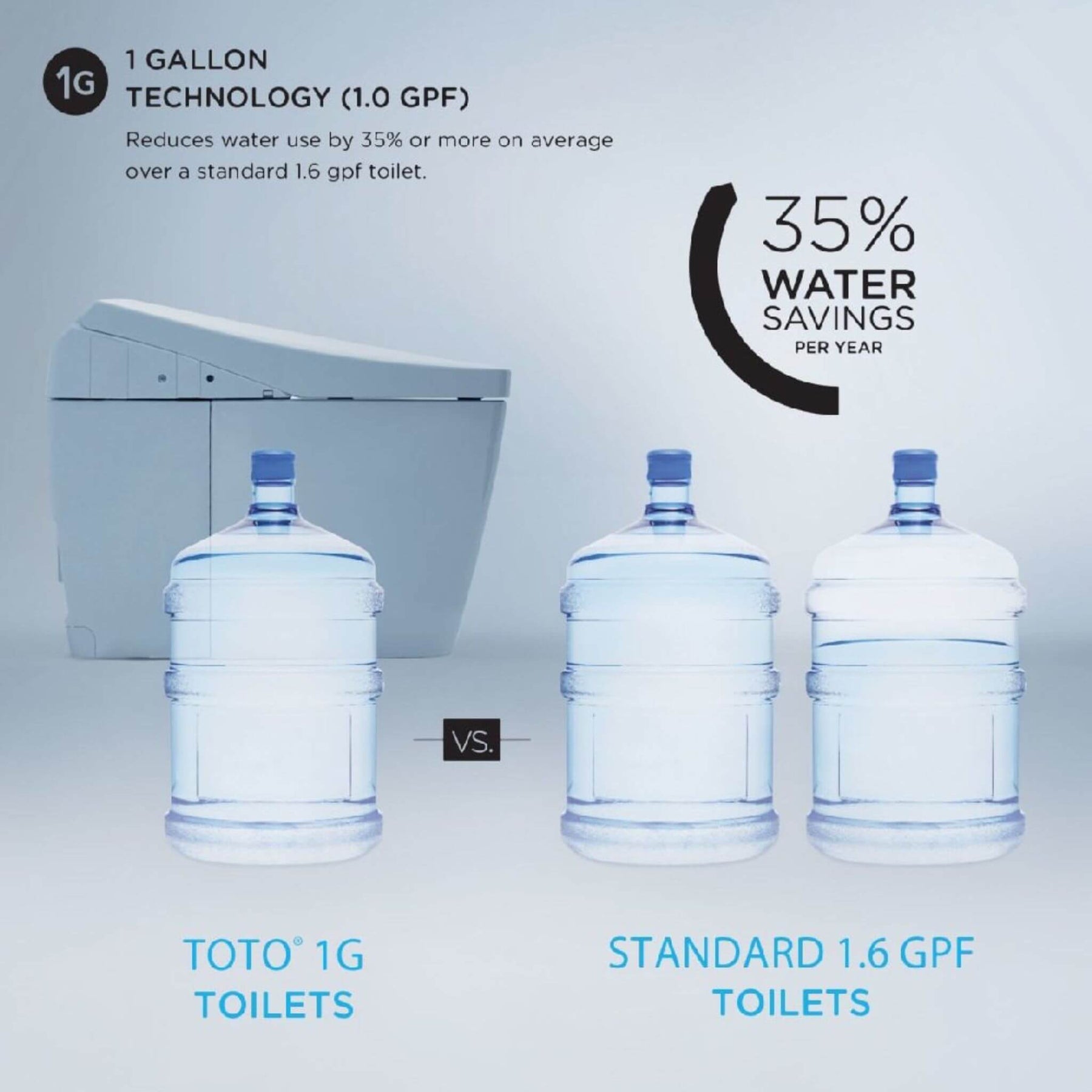 • 1G Technology delivers a powerful flush while saving water