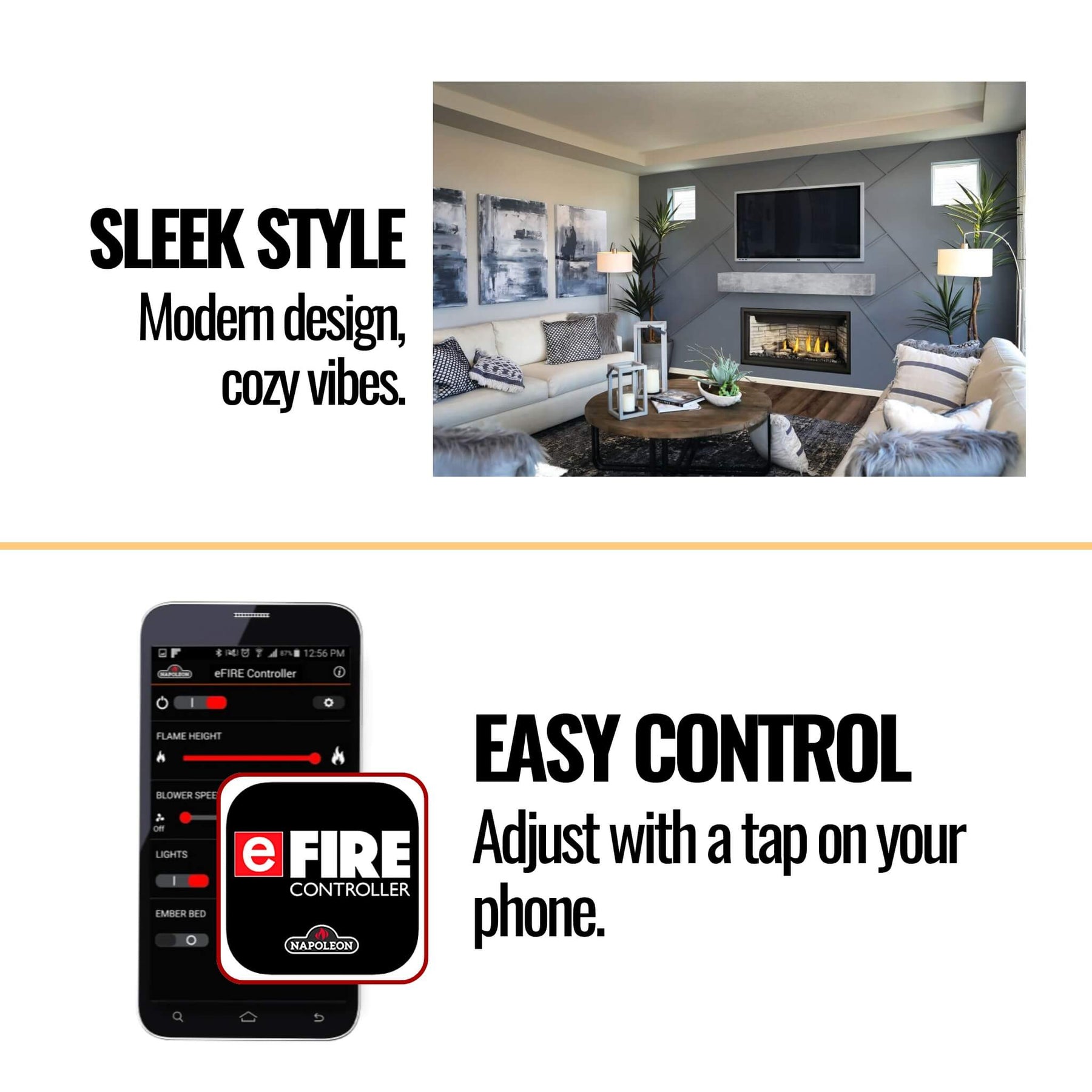 • eFire Mobile App Control — Manage flame and heat from your phone for effortless comfort.