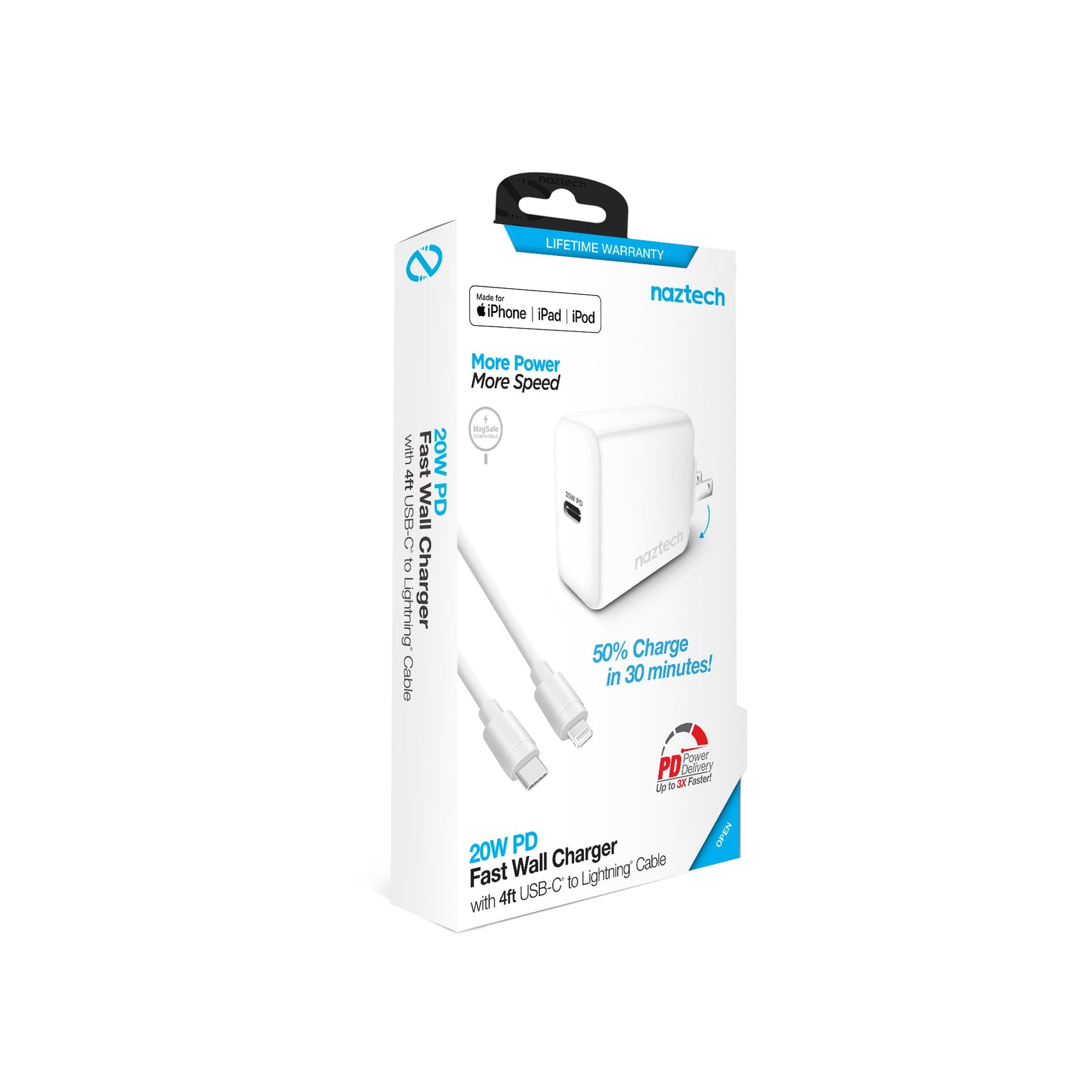 Naztech 20W PD Wall Charger + USB-C to Lightning 4ft Cable