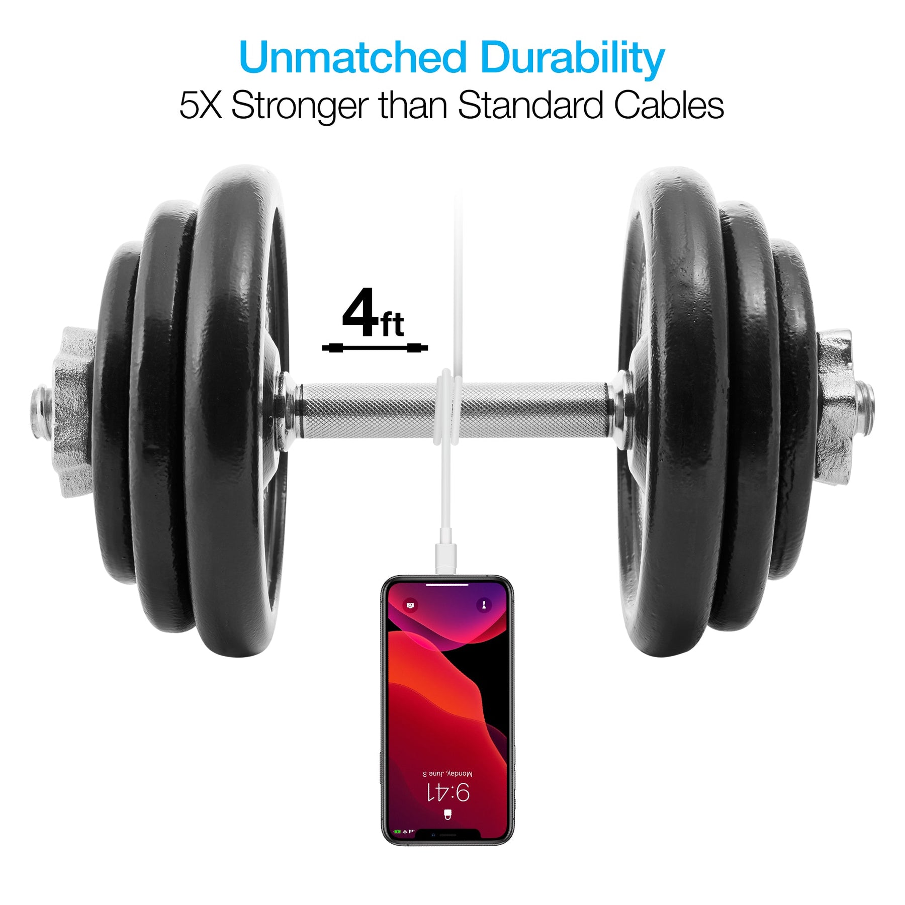 Included in the kit are a 20W USB-C PD wall charger and a 4ft USB-C to Lightning cable—the two essentials you need for the fastest possible charge on compatible iPhones.
