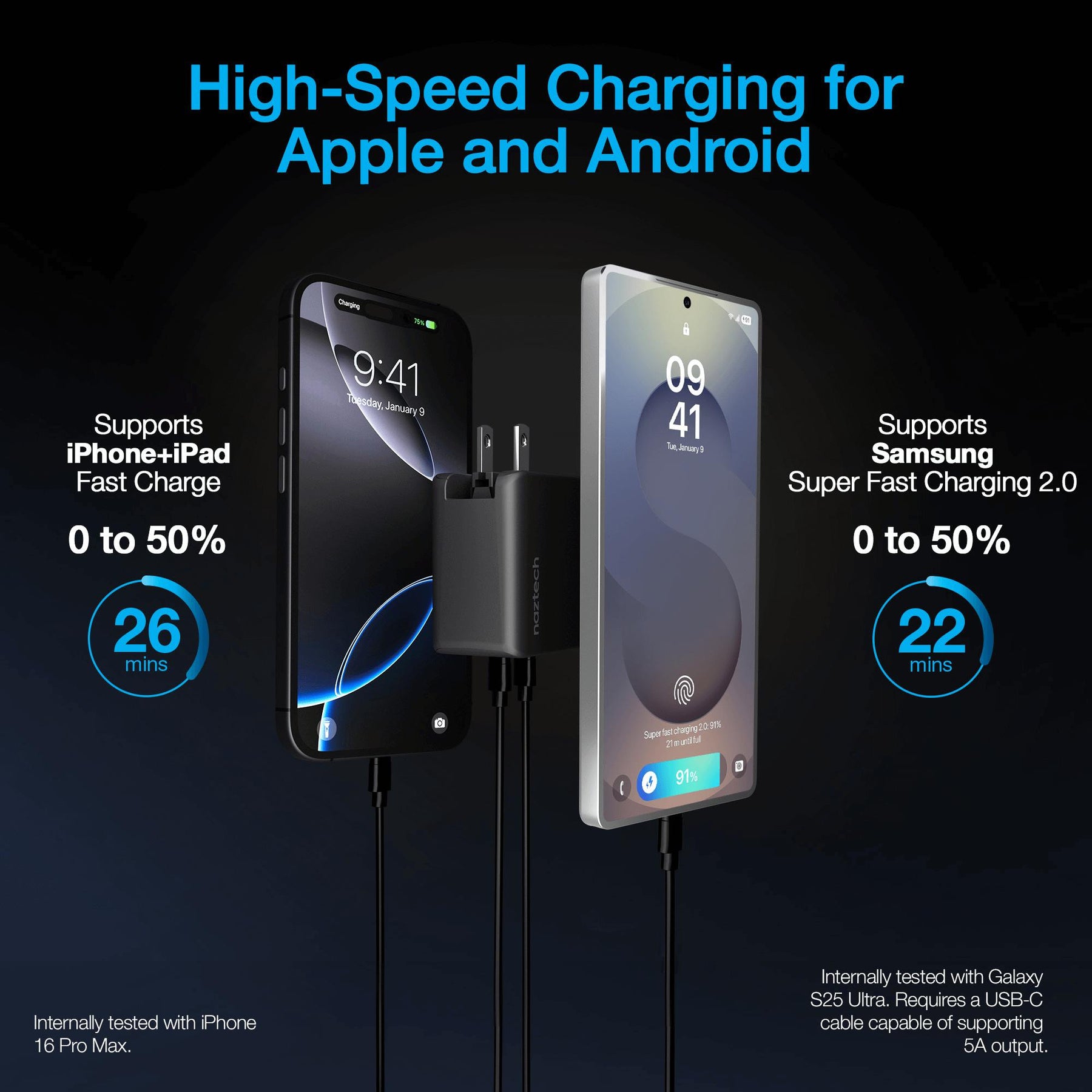 • Super-Fast Charging for iPhone and Android Phones — cut the wait, not the charge.