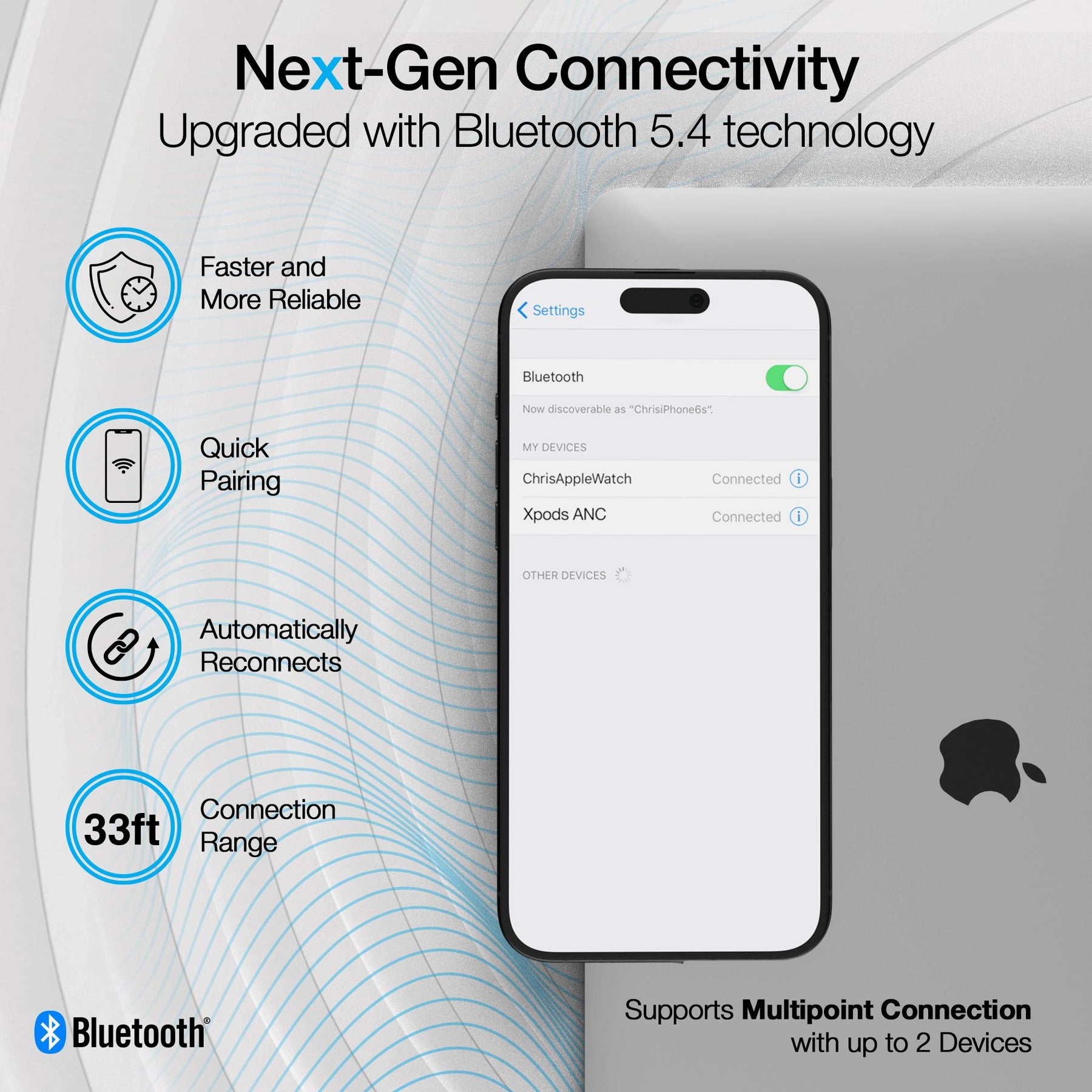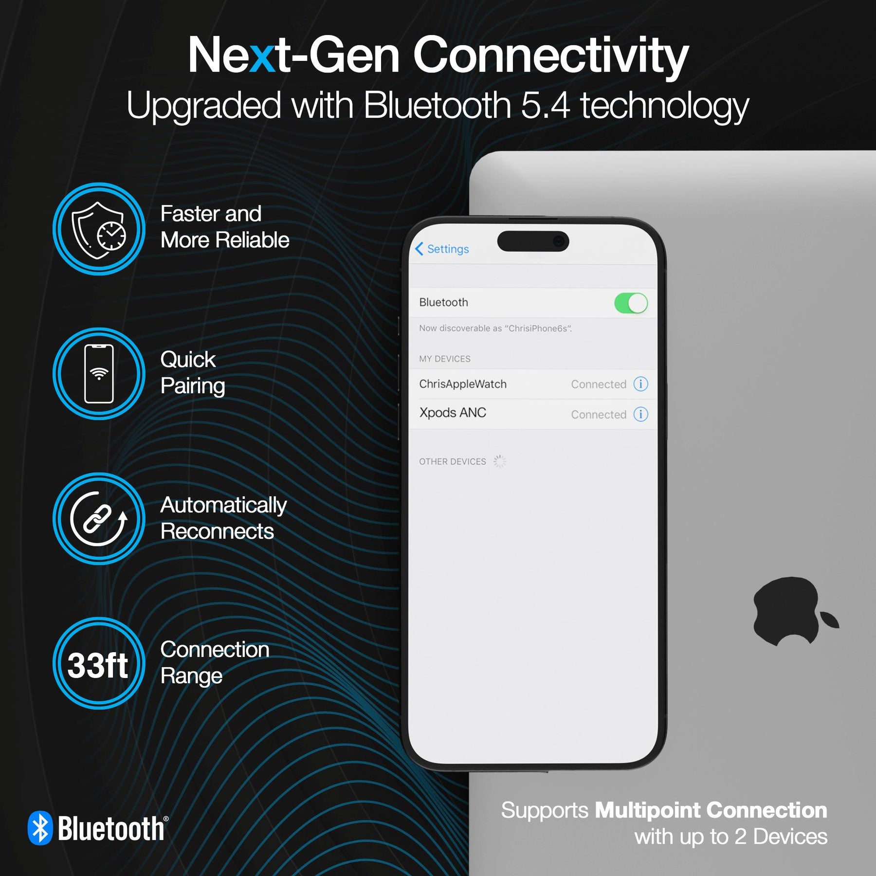 • Multipoint Connection for 2 Devices with Bluetooth 5.4, so you can switch between devices seamlessly.