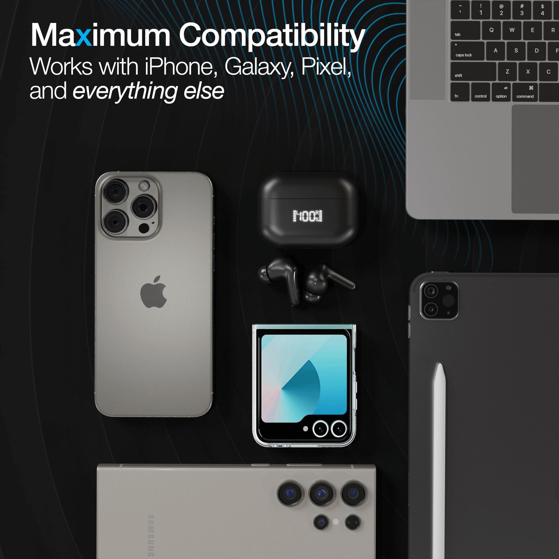 • Wireless Charging Case with Digital Battery Display makes charging and battery monitoring a breeze.
