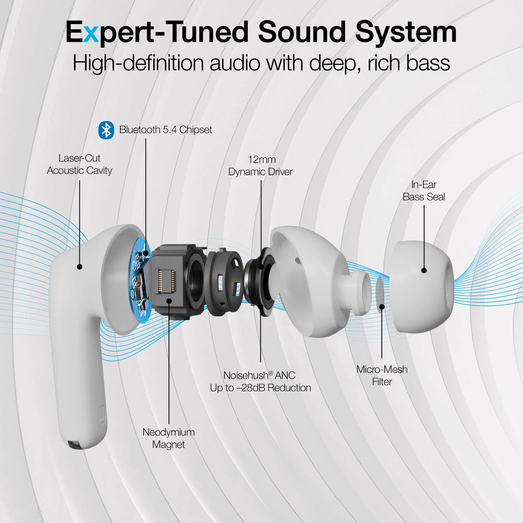 • Noisehush Adaptive Active Noise Cancelling keeps outside noise in check for focused listening.