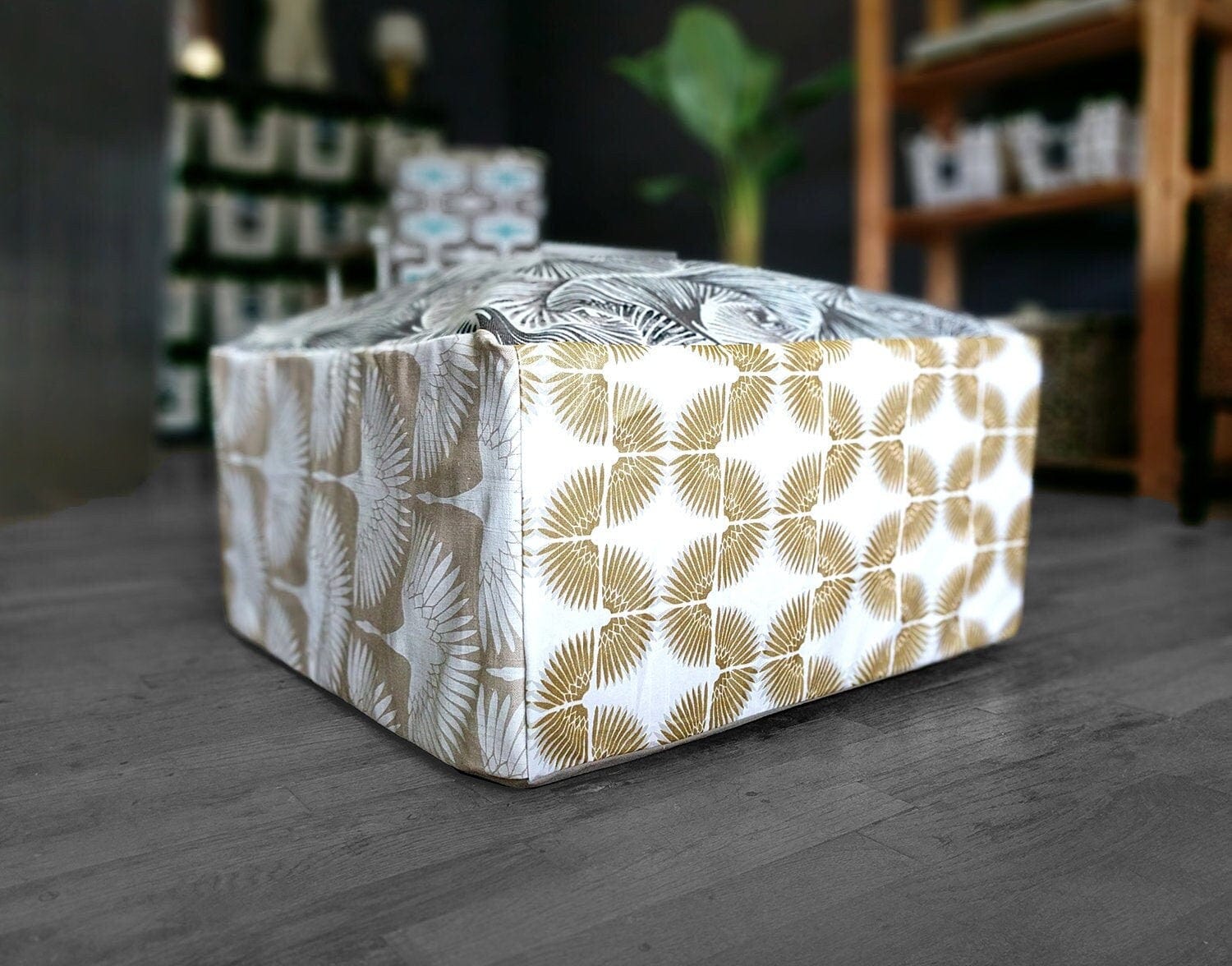 SALE Bean Bag Pouf Cover, Ottoman Neutral Tones, Gold Patterned