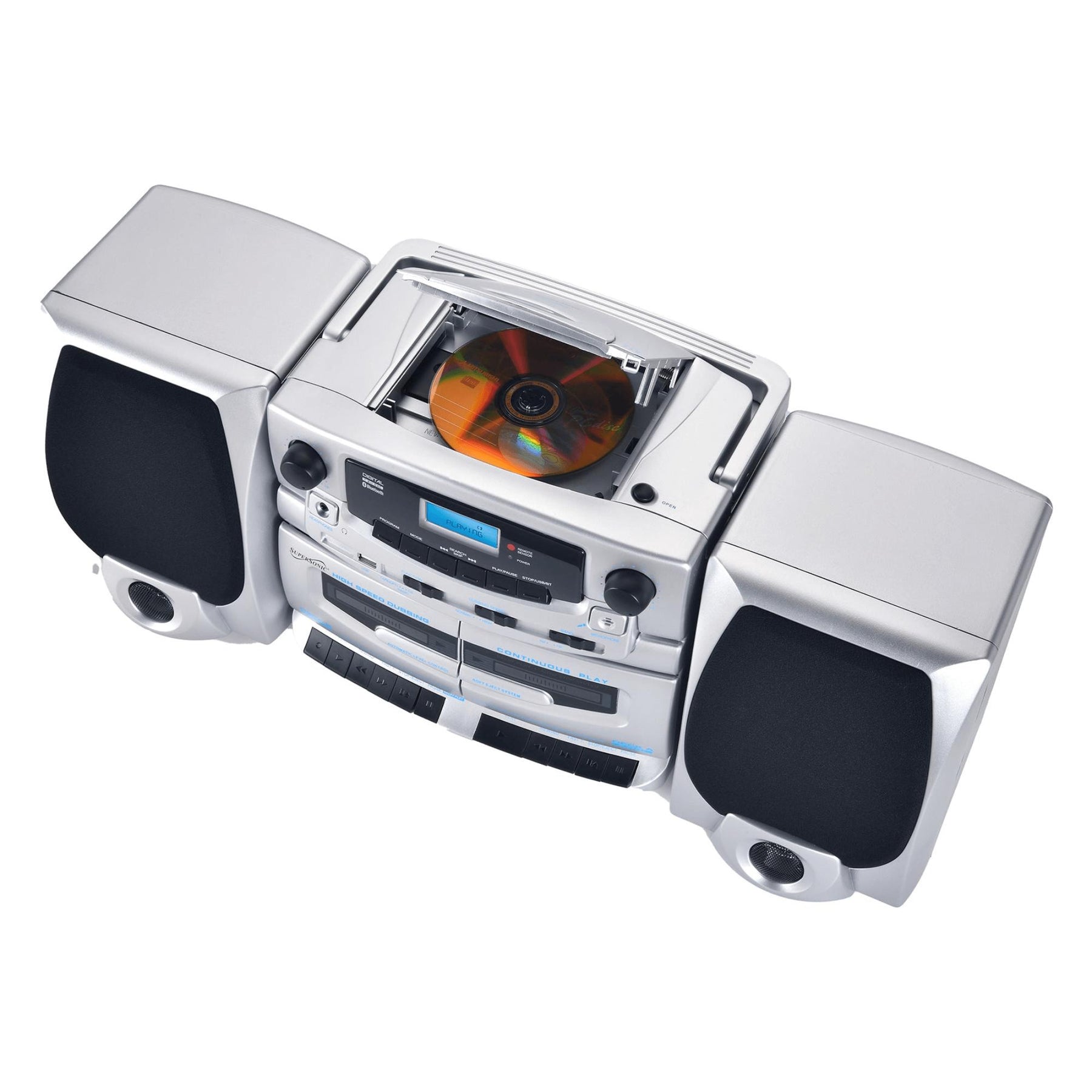 • Double Cassette Recorder: Record from CD, Radio or Built-in Microphone for all your mixtapes and memories.