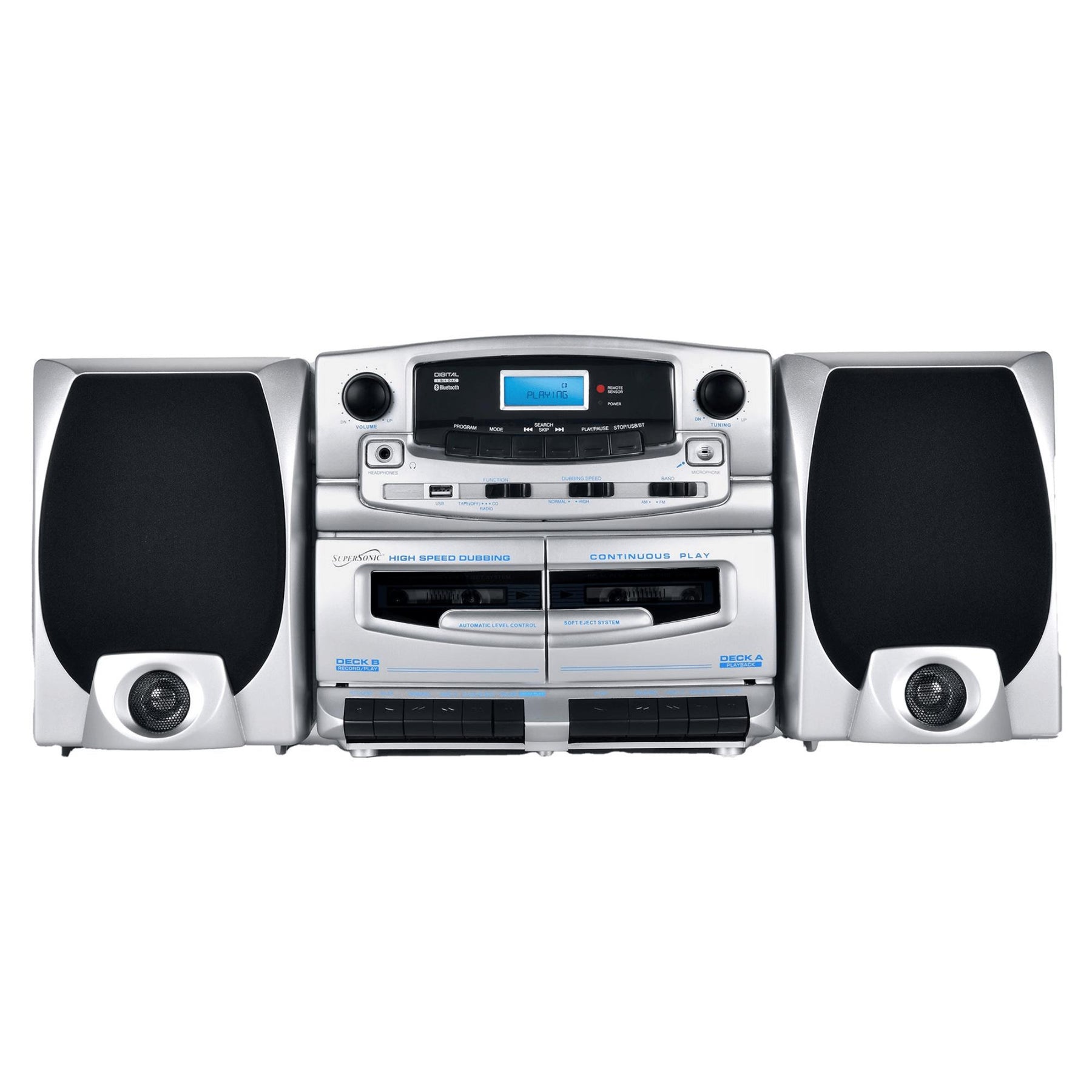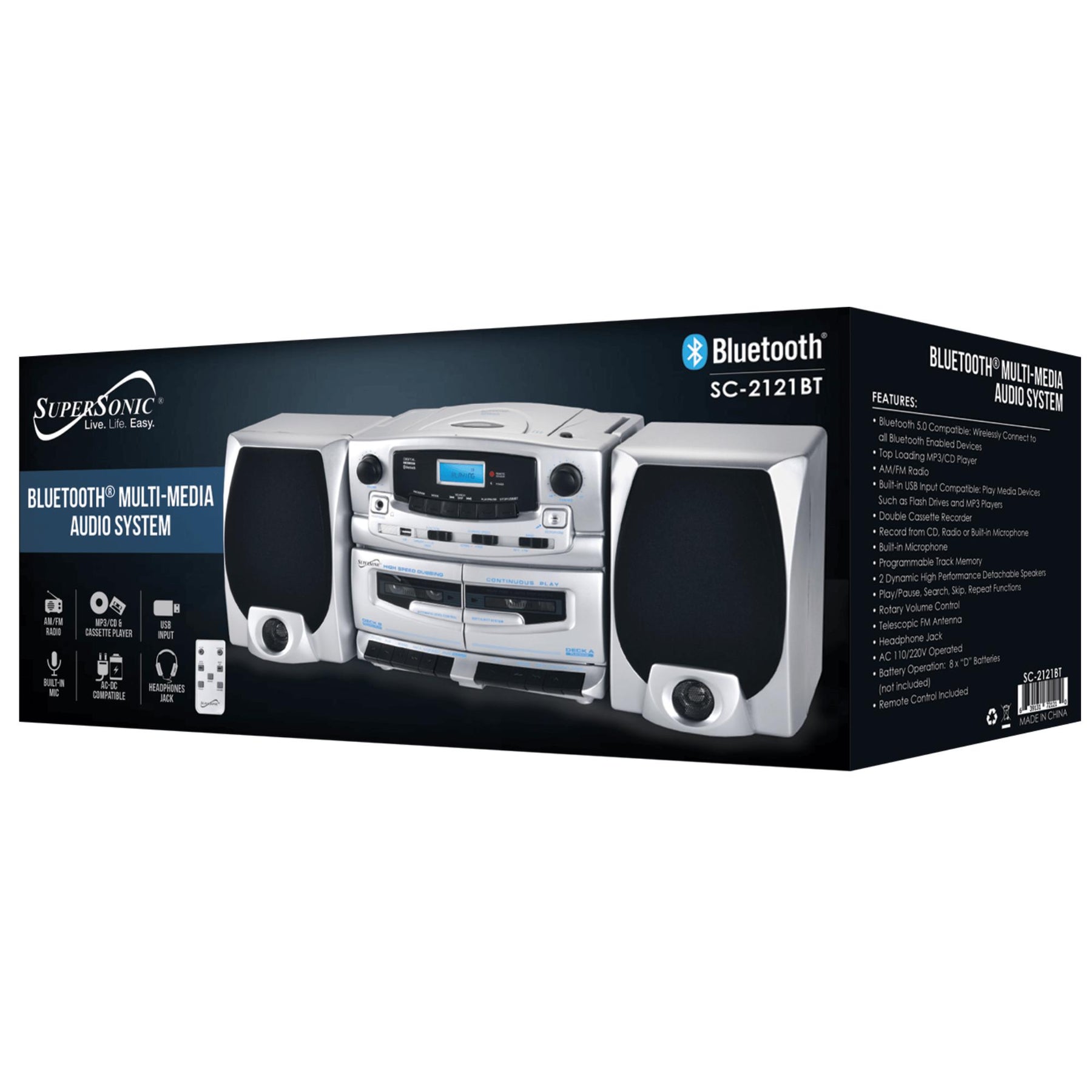 Supersonic Bluetooth Audio System with Double Cassette Recorder & Built-In Mic (SC-2121BT)